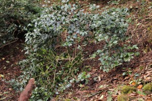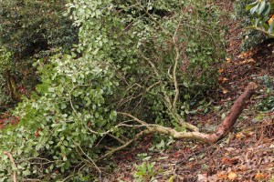 The last picture is what is left of Camellia ‘The Mikado’. As ghastly as it looks, it will eventually recover. My greatest concern is for ‘Takayama’, which is directly under the trunk out of picture to the right. It is the only one in the collection and is a beautiful variety.