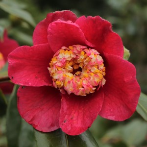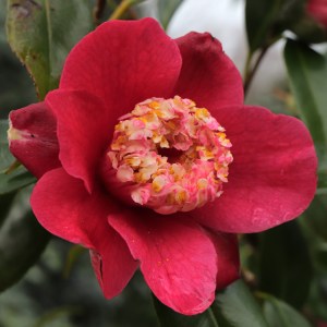 The sasanqua x reticulata hybrids are moving toward peak flowering. Usually ‘Show Girl’, especially the specimen in the species section, steals the show both on display and flower size. This year it is as good as ever but ‘Flower Girl’ is the best I’ve seen it and almost the equal of ‘Show Girl’.