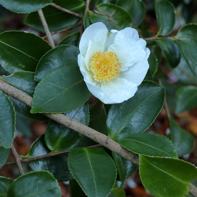 It seems likely that both the Mt Edgcumbe plants were obtained from reputable nurseries who were selling them in the belief that they were what they said they were. They may still be doing so. I now have another name to attach to this variety but what does it take to be certain that it is the right one? The Register entry for C. sasanqua ‘Fragrans’ is not especially enlightening: “of graceful, erect habit, bearing ovate-lanceolate leaves and fragrant, white flowers which have a neat cluster of golden stamens”. That could apply to quite a few varieties. There is nothing about its origins. It was shown by Lt. Col. L. Messel of Nymans in 1938 so there may be an “original” plant still there.