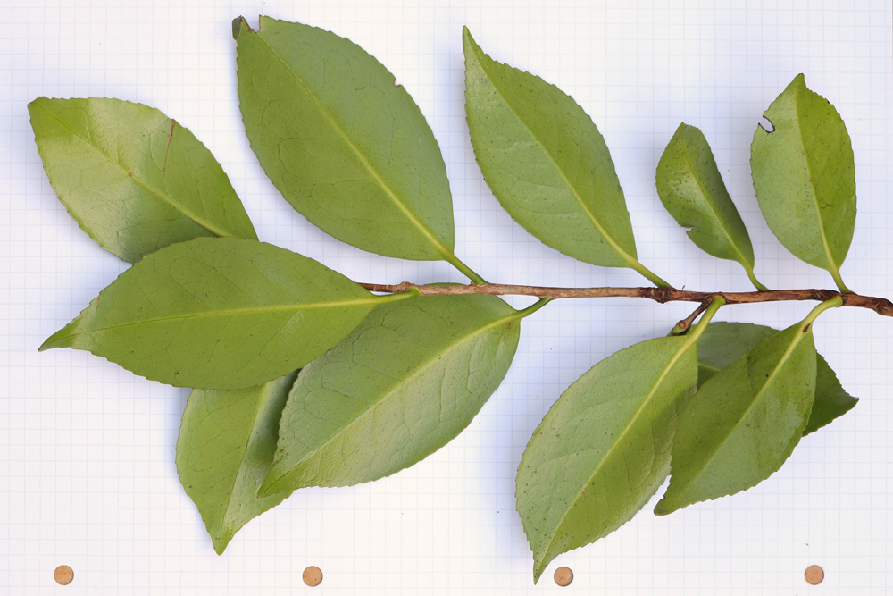 I was recently sent some samples from the Wisley plant, so I was able to compare the foliage side by side with the Mt Edgcumbe plant. Taking account of the fact that the Mt Edgcumbe plant was hard pruned in 2019 and is making particularly strong regrowth, plus the fact that it is, in Cornwall, growing in a much higher rainfall area than Wisley, I am fairly sure that the two are the same. Neither is flowering at present, but photographs show the flowers to be a good match. Even if there is doubt about it being the same as the Mt Edgcumbe 5A plant, there is no room for doubt that it is every bit as distinct from the Mt Edgcumbe 3C plant which I believe is ‘Masayoshi’.