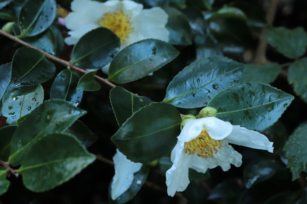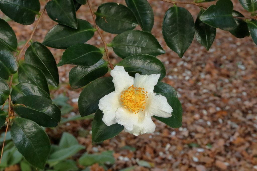 There are three plants at Mount Edgcumbe, one labelled Camellia oleifera, two labelled C. sasanqua ‘Fukuzutsumi’, planted in 2006. They are all the same variety. I wrote a blog about them in November 2020, tentatively concluding that its correct identity was Camellia sasanqua ‘Fragrans’.