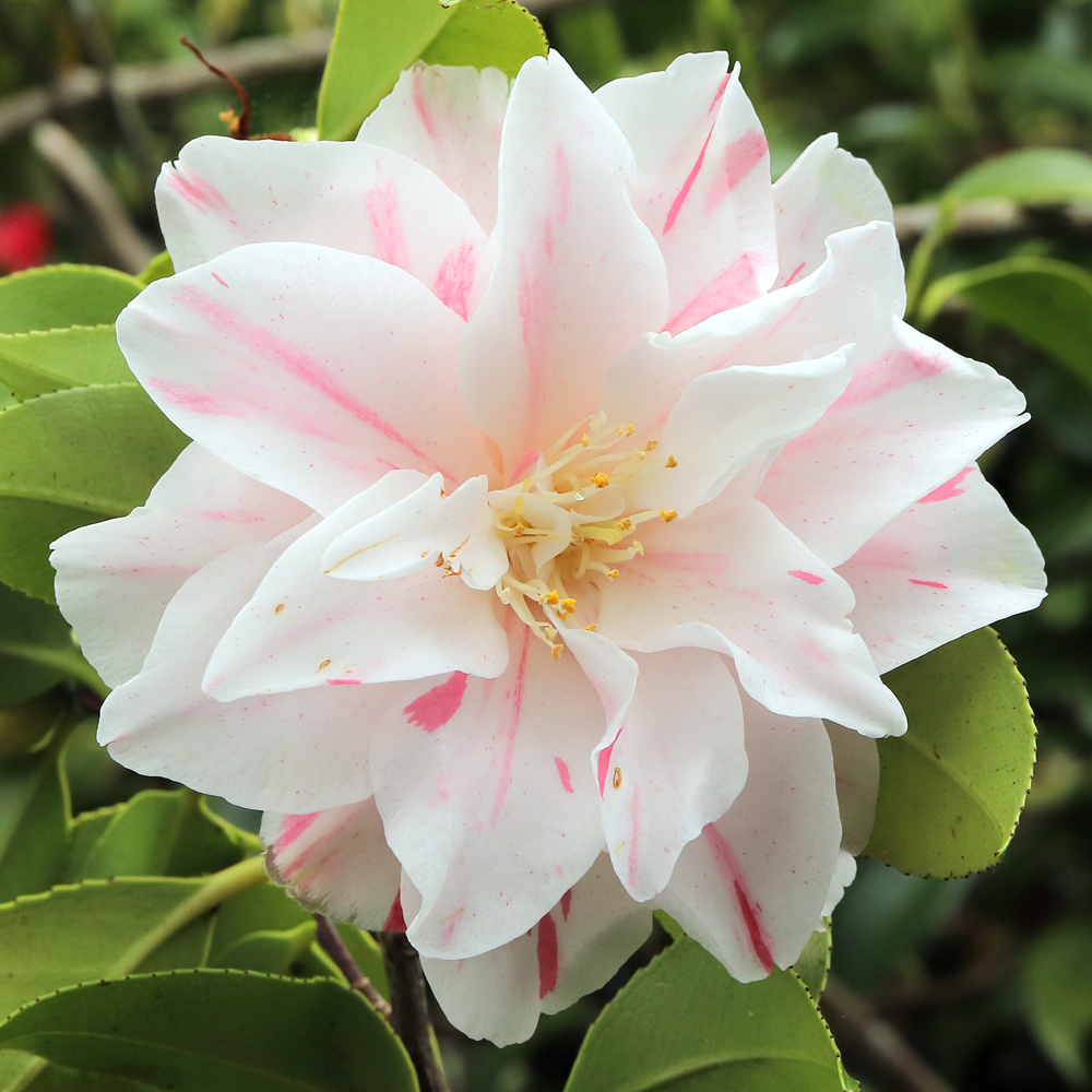 • I am in a state of near permanent perplexion over any number of comparable comparisons. The entry in Jennifer Trehane’s book about Adolphe is interesting: “Camellias under this name are found throughout the world, but it is probably the most mixed up camellia in the nurseryman’s catalogue. Five different forms, from different sources, were found in a recent DNA assessment. Most commonly confused with ‘The Czar’.” Where do you start with that? Why confuse it with ‘The Czar’, they’re nothing like each other. Different forms? How different? A small mutational difference or completely different varieties being grown under the same name? How much stock can one put in DNA based comparisons, given that they only look at a tiny subset of markers and Camellias can change pretty drastically on the basis of a single mutation. And that’s before you get into chimaeras, jumping genes or viruses. The Mount Edgcumbe collection has more than one plant of a good part of the collection, often growing in different locations, so I get ample opportunity to compare the same variety growing in different conditions, which can make a bigger difference than there is between similar varieties.