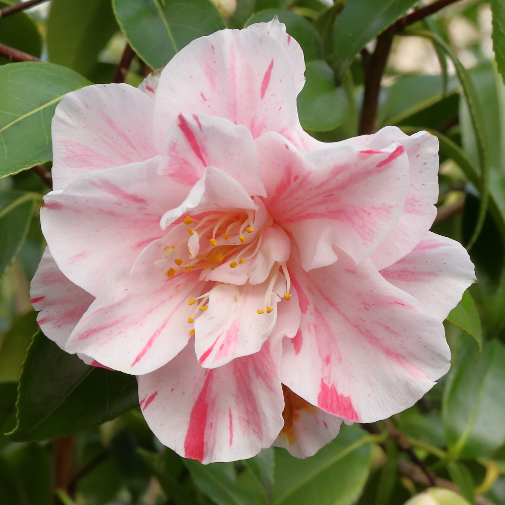 It came into the collection from a keen collector who was importing plants from America, back when that was still possible. I went through all the images in the Southern California Camellia Society Nomenclature, noting possibles, then came to C. japonica ‘T. K. Variegated’. It looked like a perfect match. I did a Google search for ‘T. K. Variegated’, came up with very little, but that little didn’t make me think I might be onto the right thing. The online Camellia register added nothing useful. I have failed to contact the collector, who is very elderly. I have failed to get a response from the one nursery in America who come up as a stockist online.