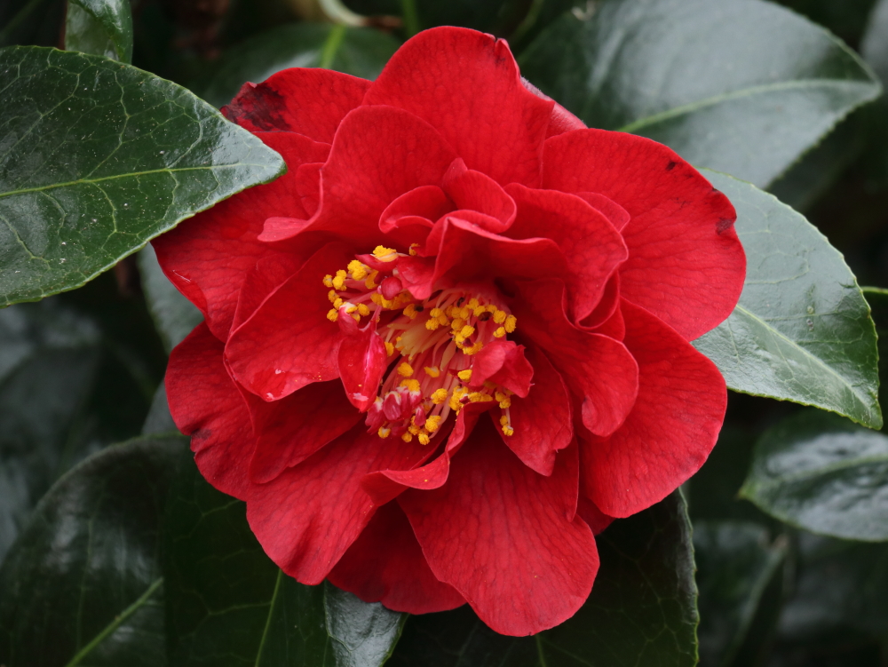 In a smallish garden, not wanting the Camellias to dominate, I have mainly kept them to the margins. They are multi-purpose plants, providing shelter from wind, screening from neighbours, a spectacular flower display in spring with a little in autumn and winter too; then in summer and autumn they form the backdrop to displays of other plants. I have 24 in the garden, covering most of what Camellias have to offer. Of course I’d like more but I resist the temptation. If I want a heavier fix I can go to Mount Edgcumbe.