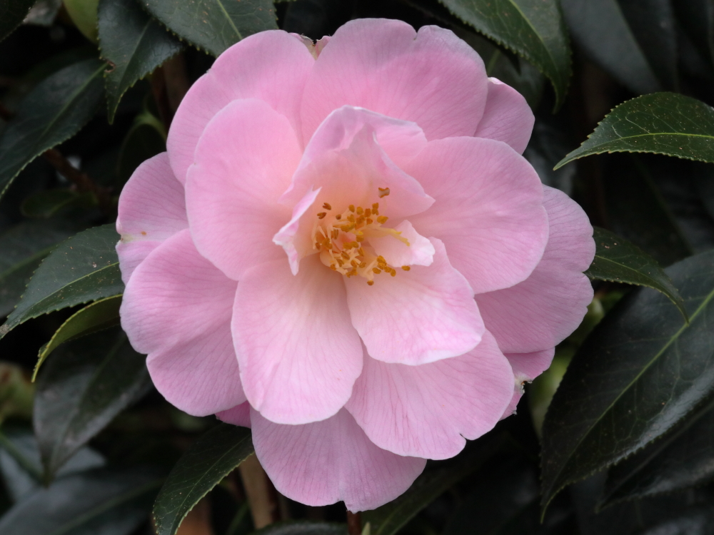 They’re an interesting little group, the fishtails. The Mount Edgcumbe collection has four, ‘C. F. Coates’, which is a williamsii cross raised at Kew in 1935 from C. saluenensis x C. japonica ‘Kingyo-tsubaki’; C.japonica ‘Kingyo-tsubaki’ itself, with single pink blooms; C. japonica ‘Kingyoba-shiro-wabisuke’, with single white blooms and C. japonica ‘Mermaid’ which is a semi-double pink raised in America from seed of unknown parentage and registered in 1947. It sounds like it may be the variety you have. The American Camellia Society Camellia Library appears to equate ‘Pink Mermaid’ with ‘Kingyo-tsubaki’ which is wrong as the latter is an old Japanese variety. It also gives its registration date as 1994 so it is seemingly different from ‘Mermaid’.