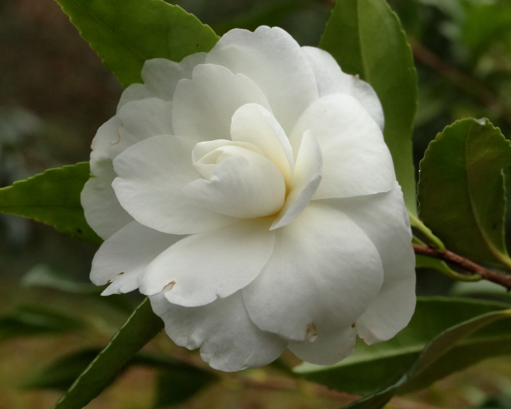 Then, since it is a fact widely acknowledged that all good things must come in threes, I shall sing the praises of Camellia sasanqua ‘Paradise Venessa’. On the same day at the end of January 2020 I also planted a fair sized bush of ‘Paradise Venessa’. There was already a plant of it in the species section, located under trees and well back from any open space. It flowers regularly enough but not very freely and the habit of the plant is very open and wide spreading. I planted the new one in an open situation with plenty of direct sunlight in order to have plants in two contrasting situations to compare. It has settled in well and this year has a good number of flowers on it. They are large, they are lovely and for at least the duration of that visit to the park, they were my favourite.