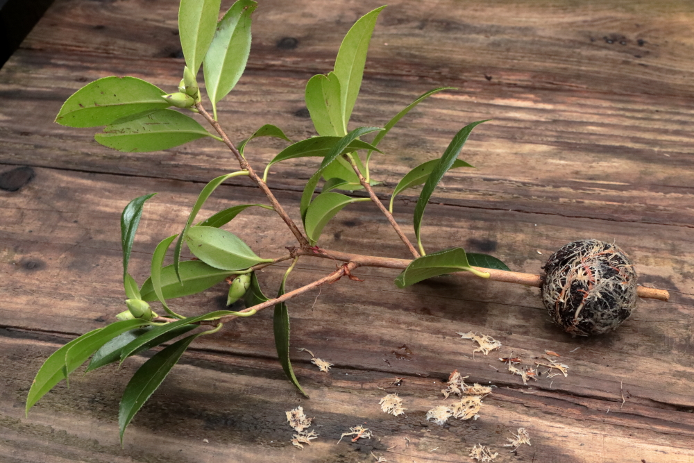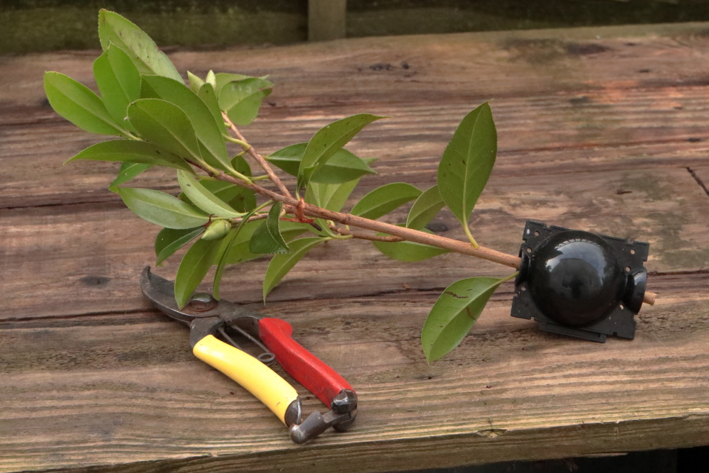 There are easier things to propagate than camellias. In my nursery days when I had access to the nursery mist bench, it didn’t seem at all difficult. For most varieties in most years, 100% success or very close was the norm for all but a handful of varieties. Then I retired and it all became more difficult. Not that I had any need to propagate more than the occasional plant, so even a low success rate would have sufficed. All too often I didn’t even get that, and eventually largely gave up trying. Then I discovered that they could be air layered using cheap plastic globes bought online.