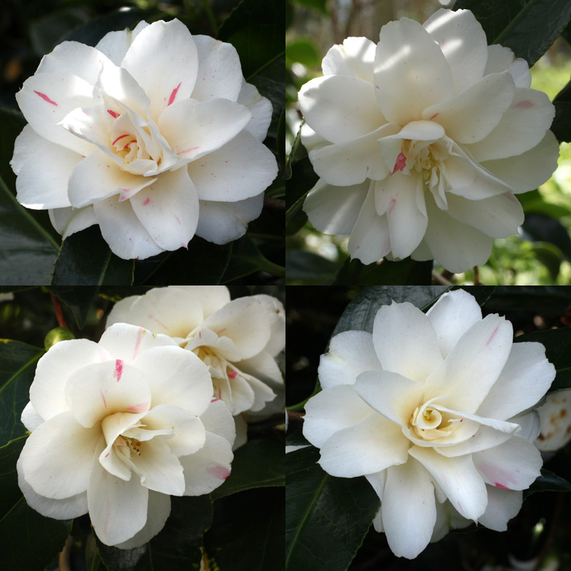 Camellia japonica ‘Sabiniana’. There is clearly confusion between Sabina, Sabrina and Sabiniana. I am not certain this is Sabiniana but it seems the best match with the description.