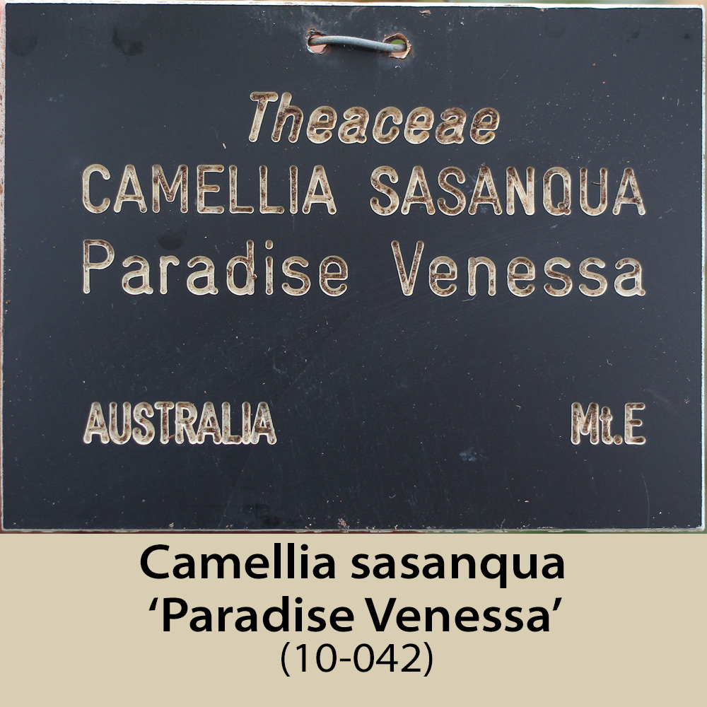 10-012 ‘Fuyajo’ is a synonym for ‘Kon-wabisuke’, described as a blackish red, small sized single. This appears to be something else. It is not a sasanqua either, flowering in spring.