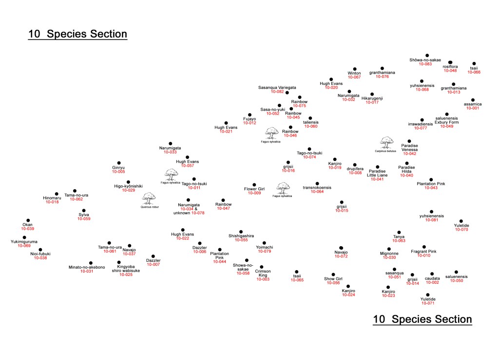 10-019 ‘Kanjiro’ was labelled ‘Hiryu’, a name used for ‘Kanjiro’ in Australia. It appears to be identical in flower and leaf to ‘Kanjiro’ at 10-023 and 10-024 so I have relabelled it as such.