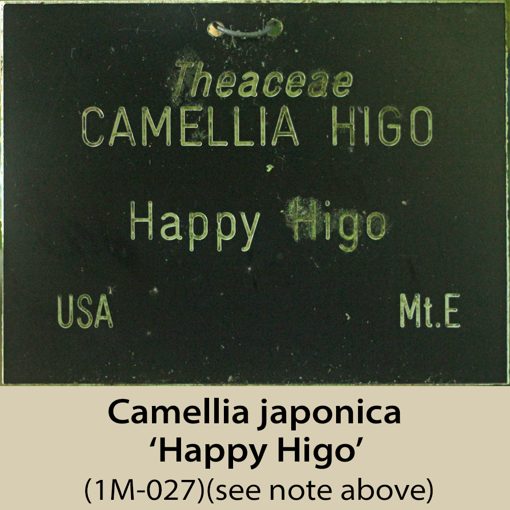 ‘Happy Higo’ (1M-027) is given as a Higo on the label here and in the Camellia Register. This is incorrect, it having been raised in America by Nuccio’s Nurseries, in whose catalogue it is listed as a japonica.