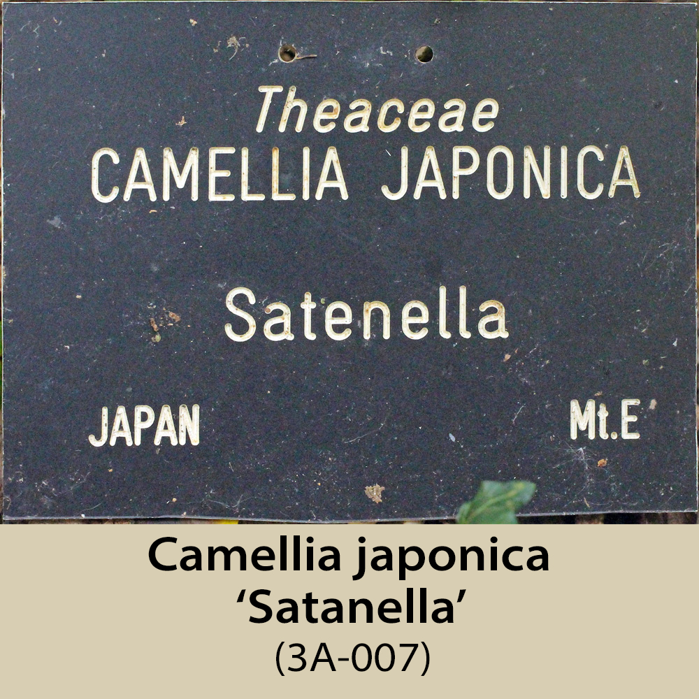 ‘Satanella’ (3A-007) The Camellia Register says this is said to be of Italian origin and to have large peony form flowers, putting the identity of this plant, with semi-double flowers, in doubt.