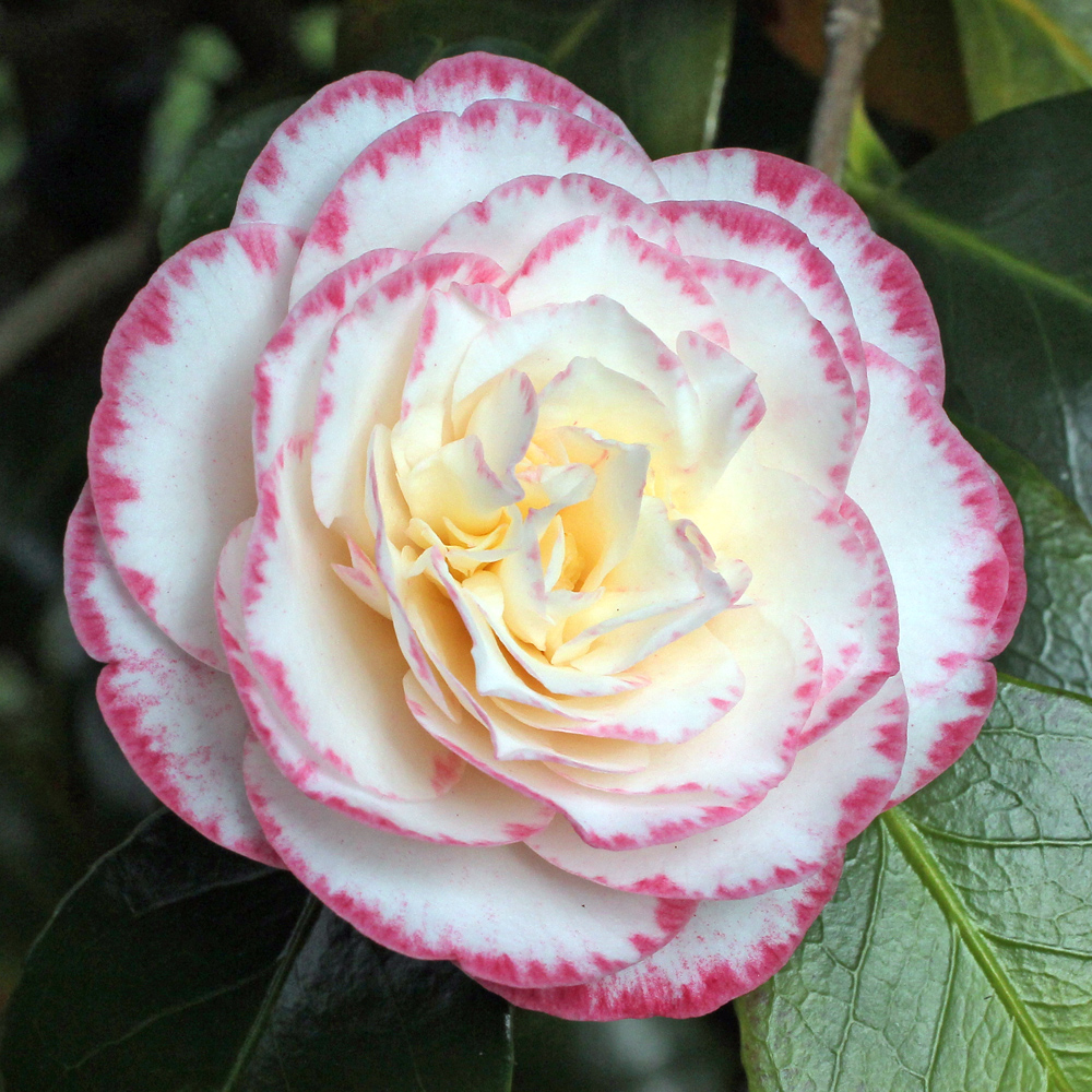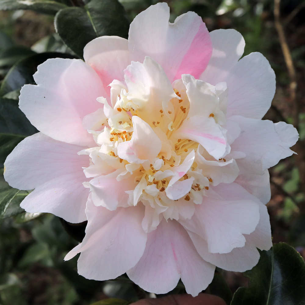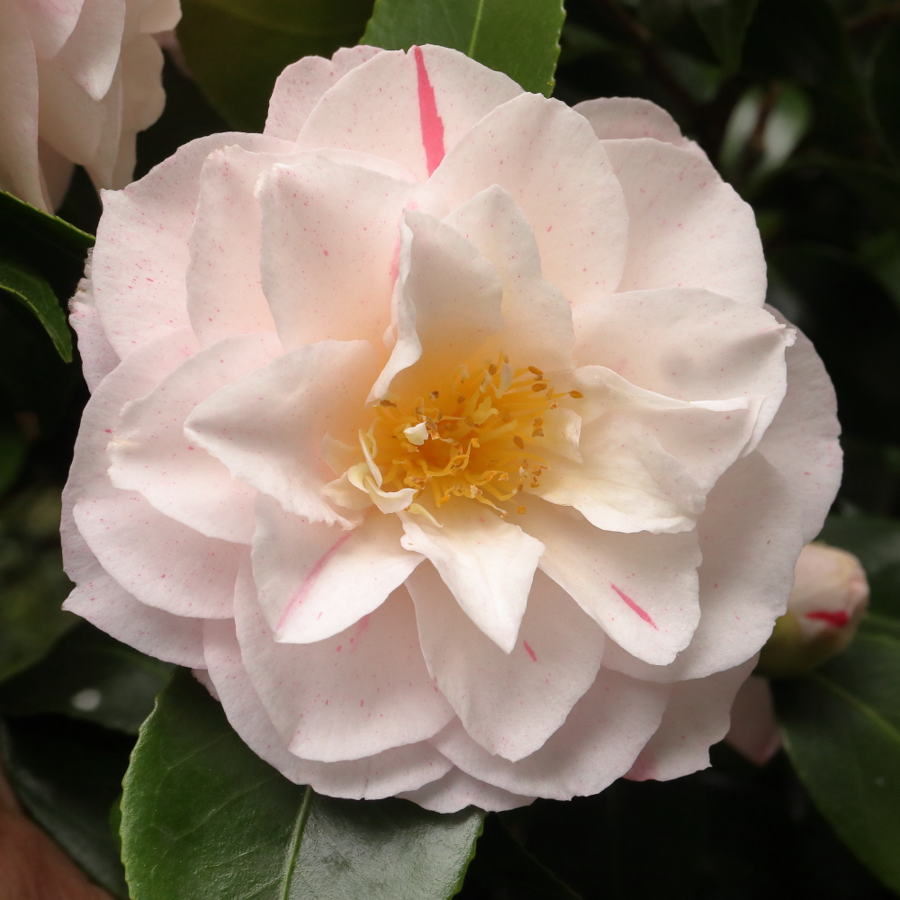 (4F-003) was labelled ‘Beverley Caffin’, which is described by the Register as being a semi-double white with pink flecking, so this is something else.