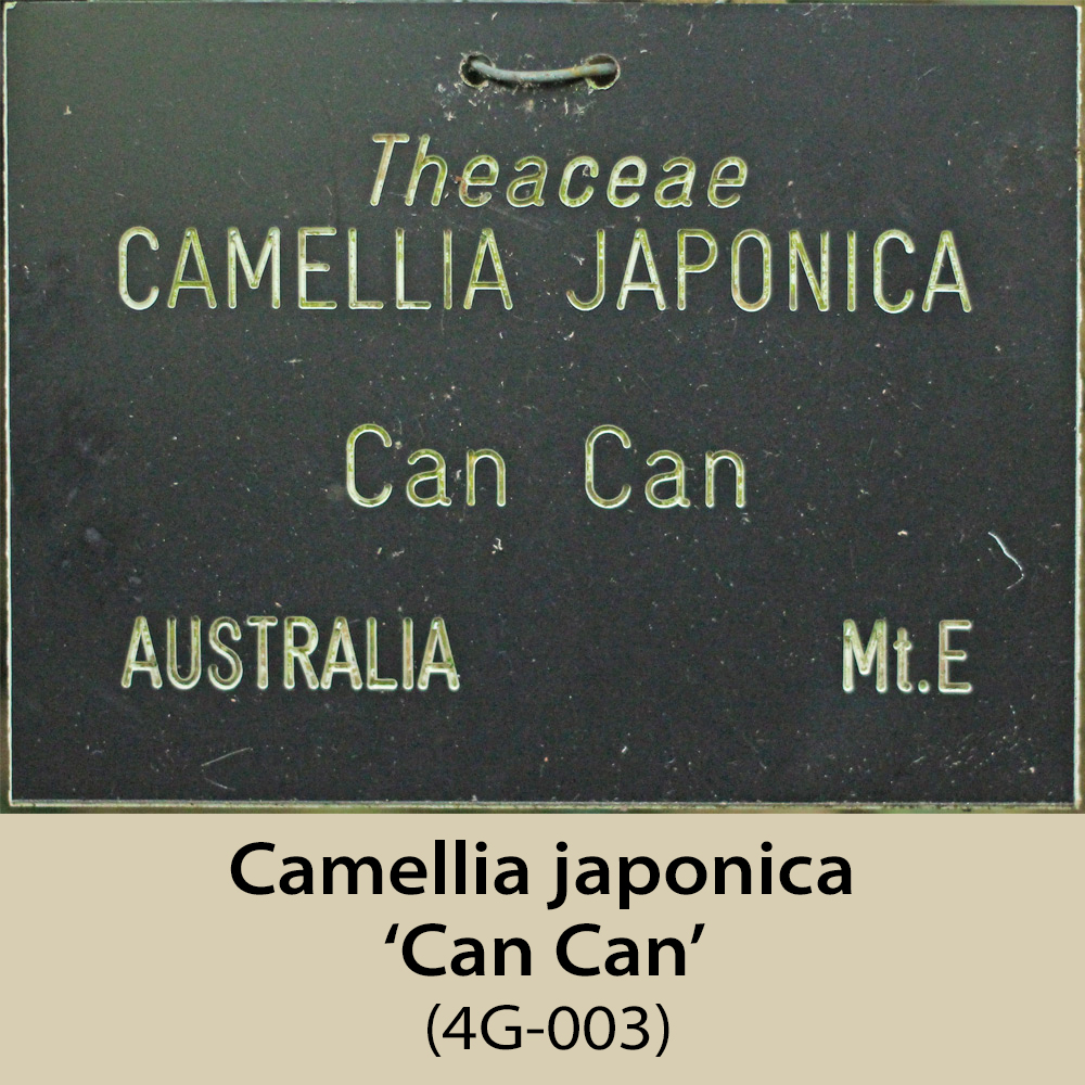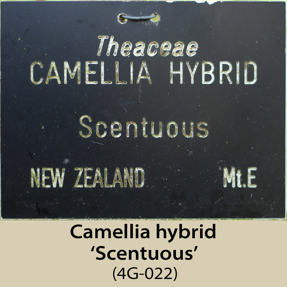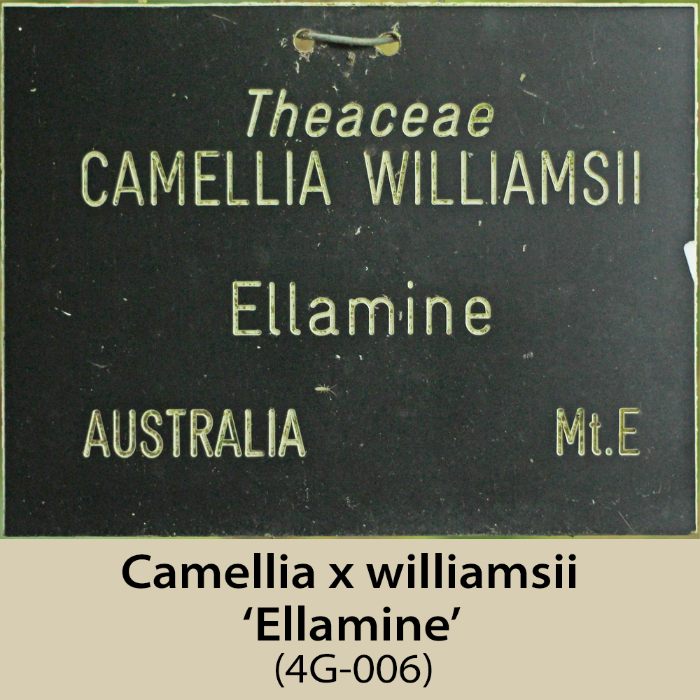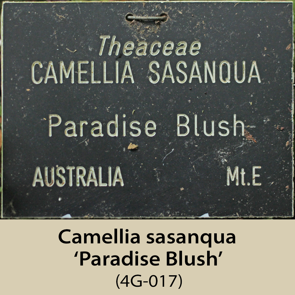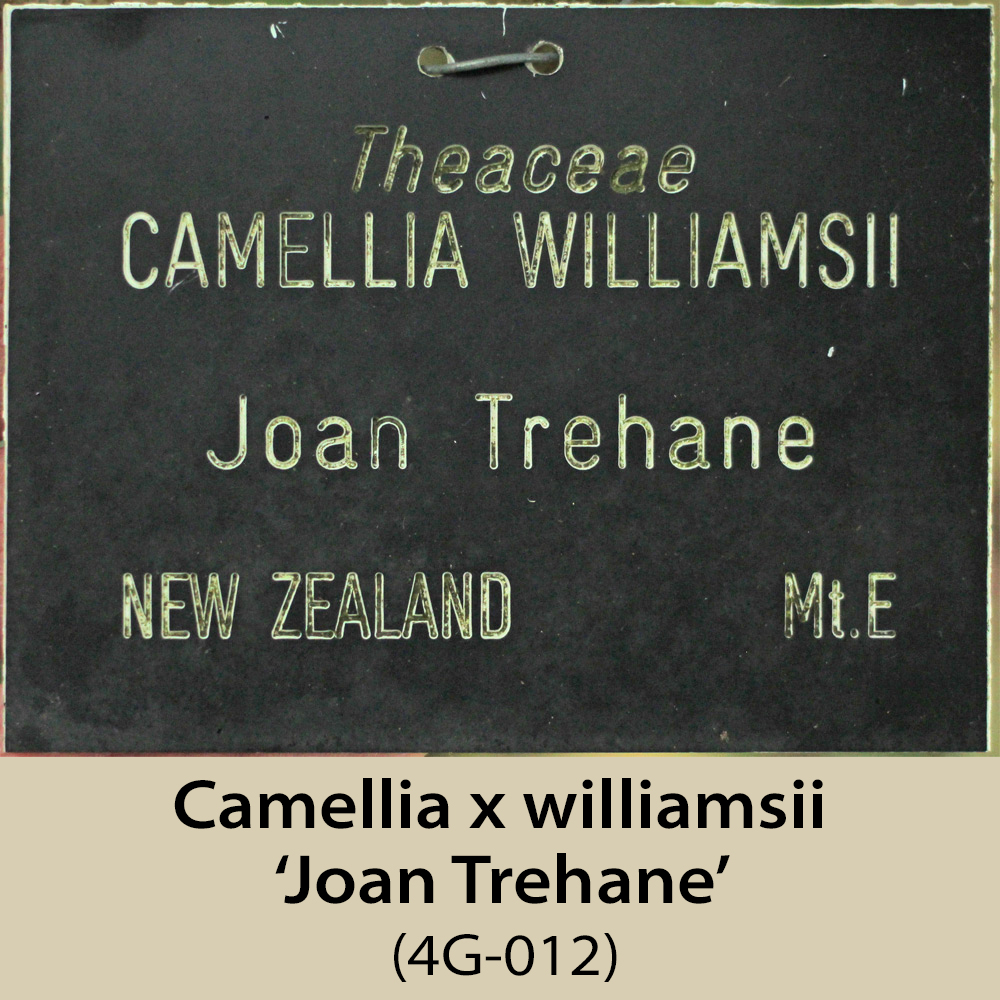 This area is, like 1E and 1F, on the north-east facing side of the amphitheatre. It is a steep slope and has a fairly dense tree canopy, so receives rather less light than would be ideal, especially for the sasanquas, of which there are several. Some of the plants here have still not flowered, having been planted in 2003, hence the plants missing from this page.