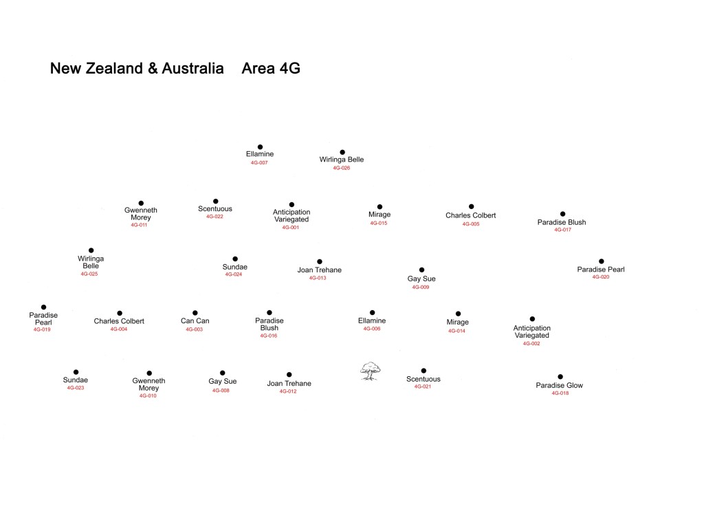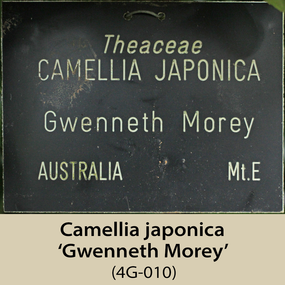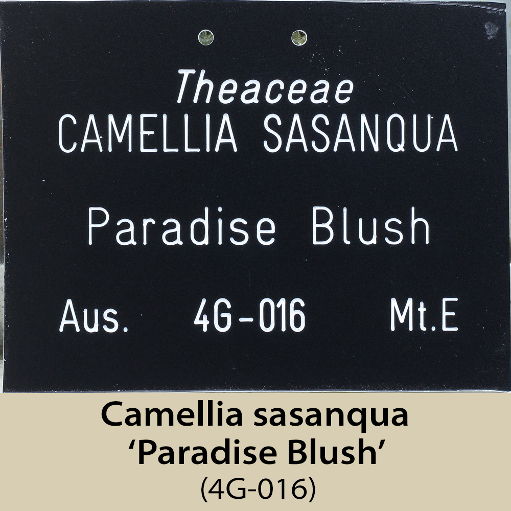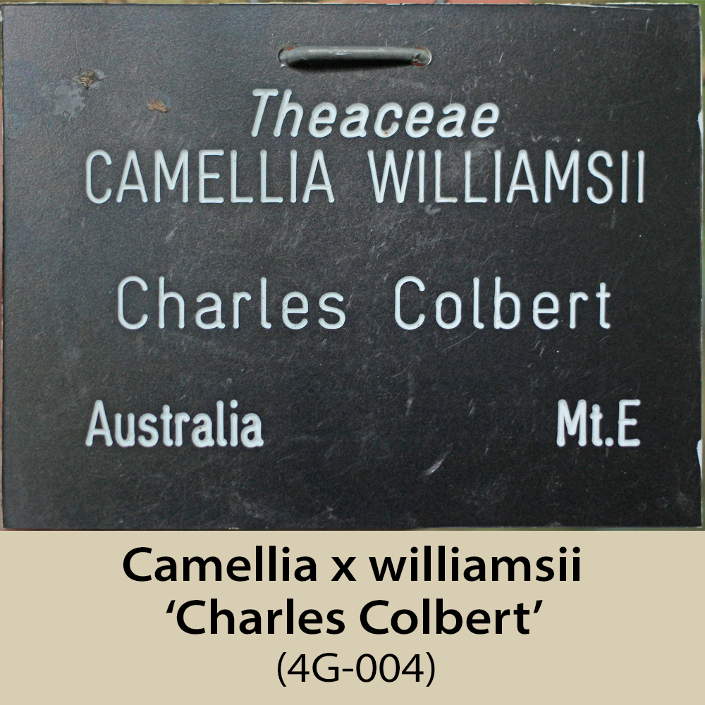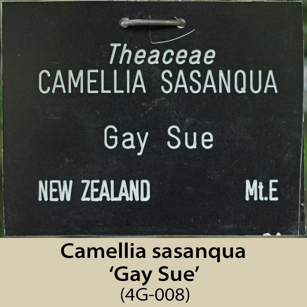 This area is, like 1E and 1F, on the north-east facing side of the amphitheatre. It is a steep slope and has a fairly dense tree canopy, so receives rather less light than would be ideal, especially for the sasanquas, of which there are several. Some of the plants here have still not flowered, having been planted in 2003, hence the plants missing from this page.