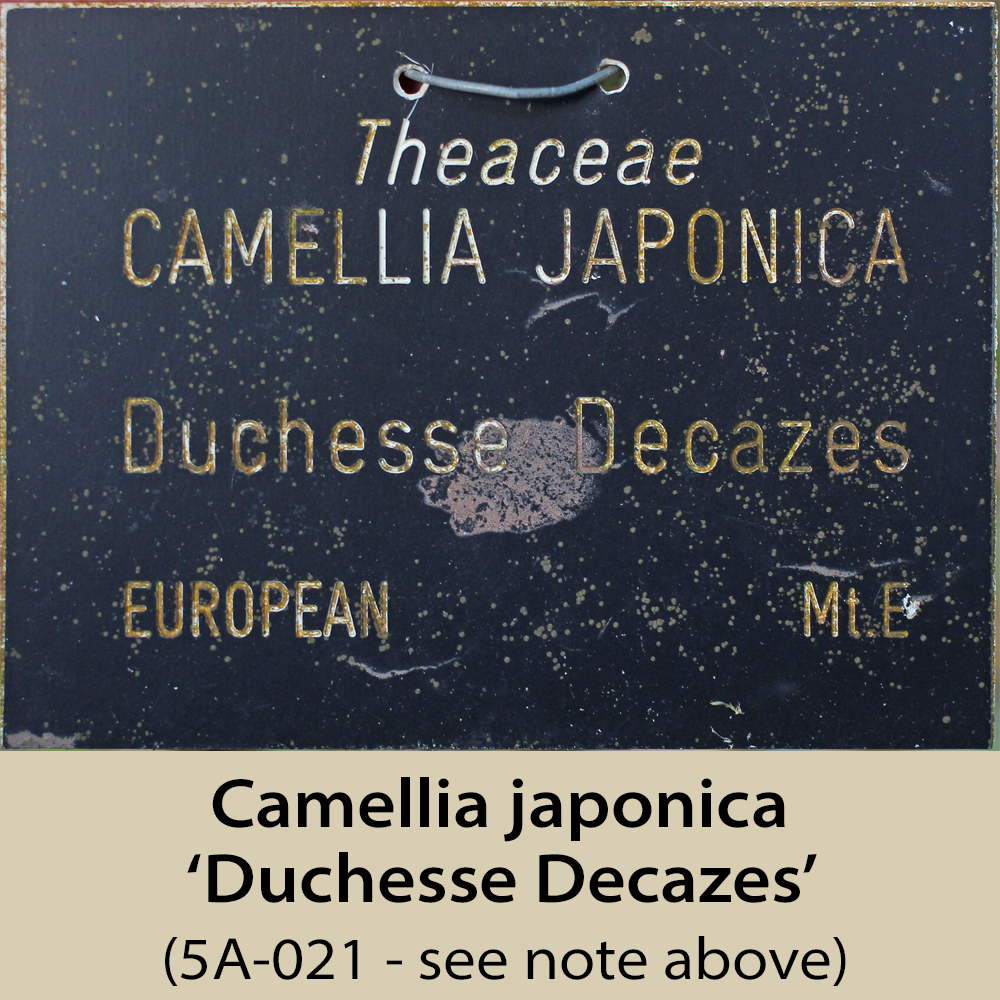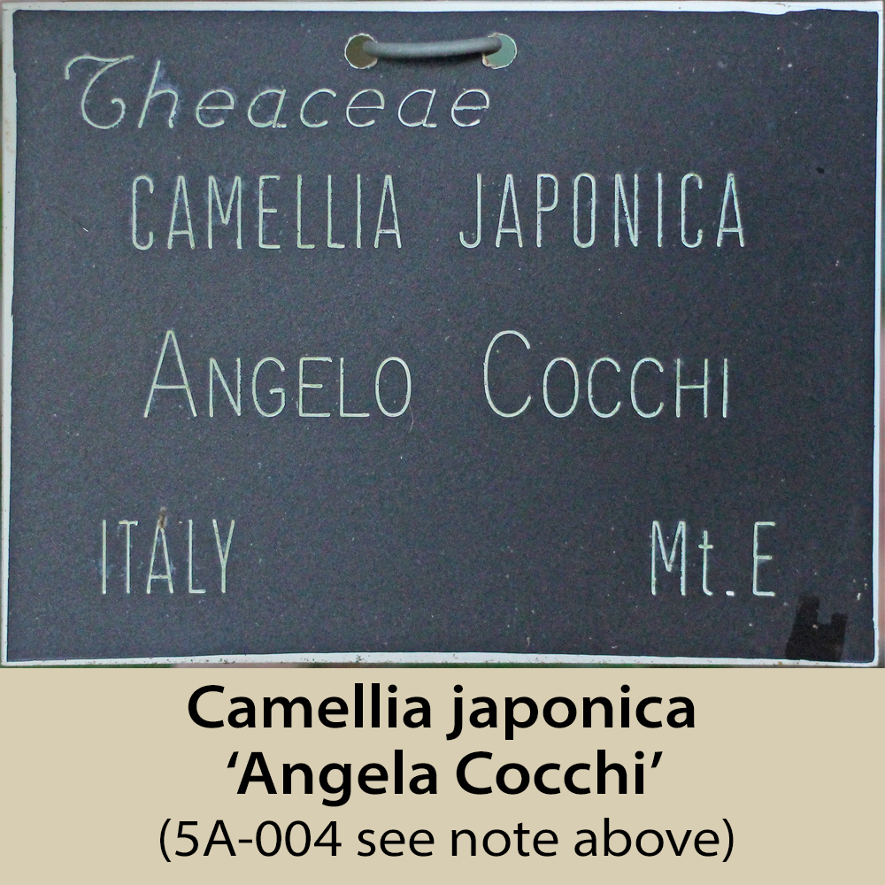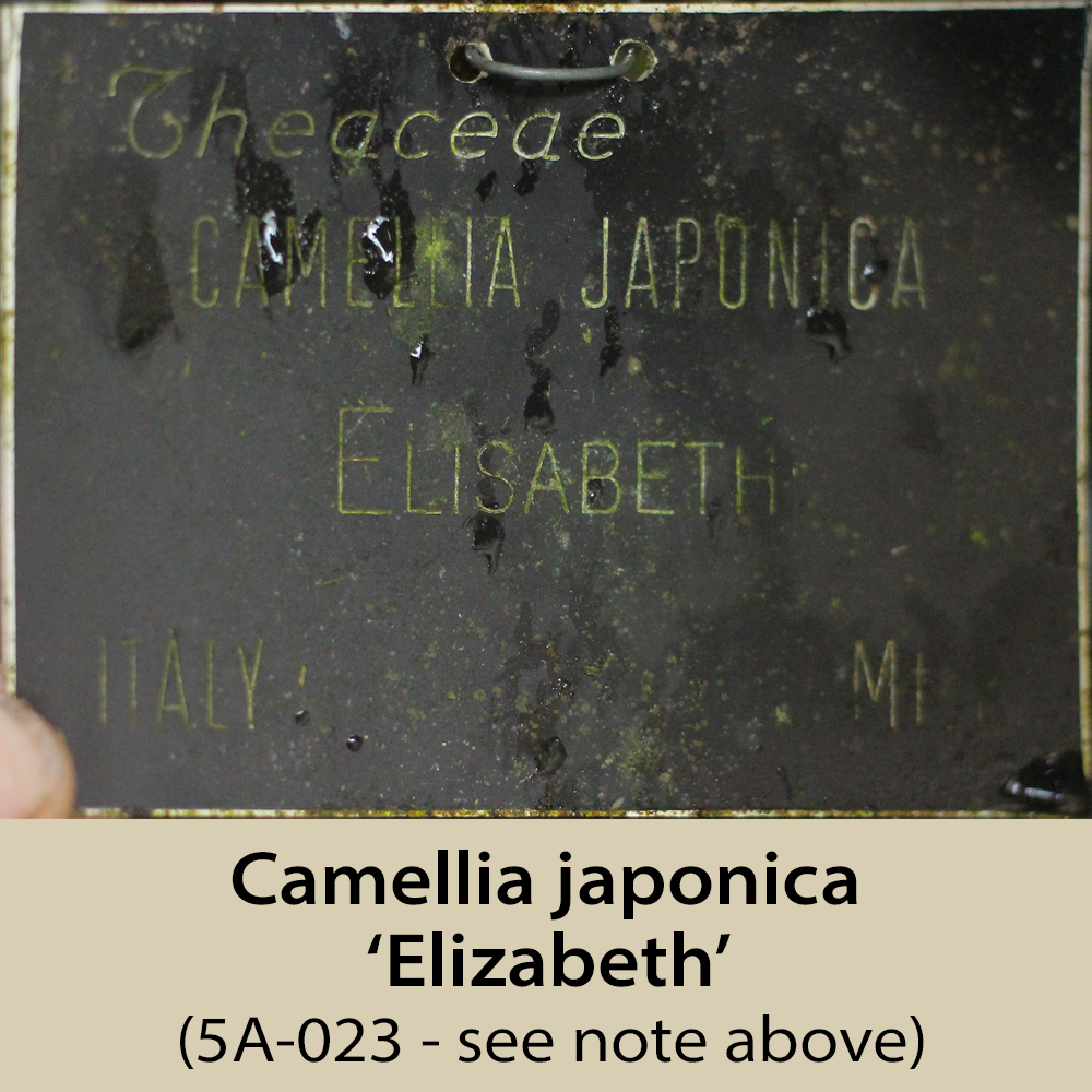 ‘Elizabeth’ (5A-002) was labelled ‘Alba Casoretti’ but doesn’t match descriptions of that variety closely. Comparison with ‘Elizabeth’ (5A-023) shows it to be the same so I have relabelled it accordingly. ‘Elizabeth’ (5A-022) is labelled ‘Elizabeth White’ but is the same as (5A-002) and (5A-023). Since the variety ‘Elizabeth’ is a white variety, putting “White” in the name is superfluous, though the (5A-022) plant has produced solid pink flowers in the past.