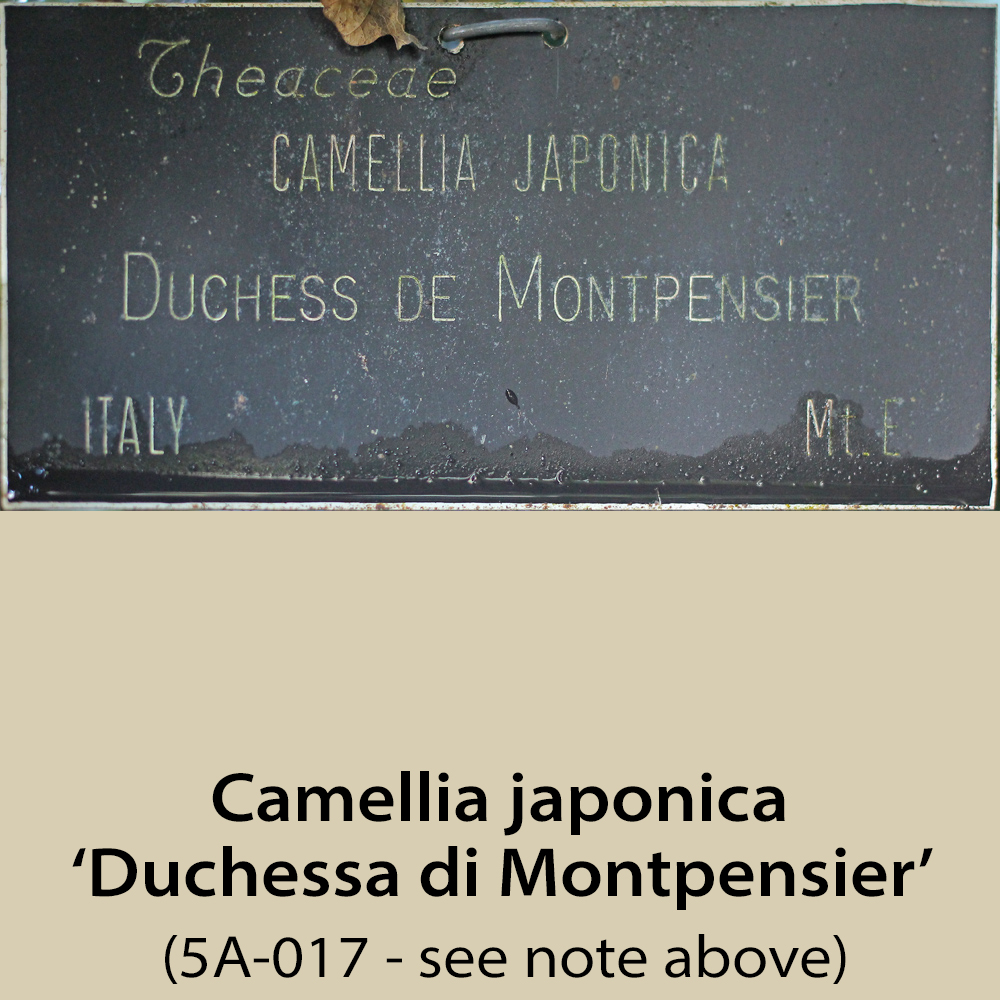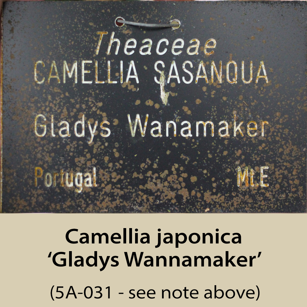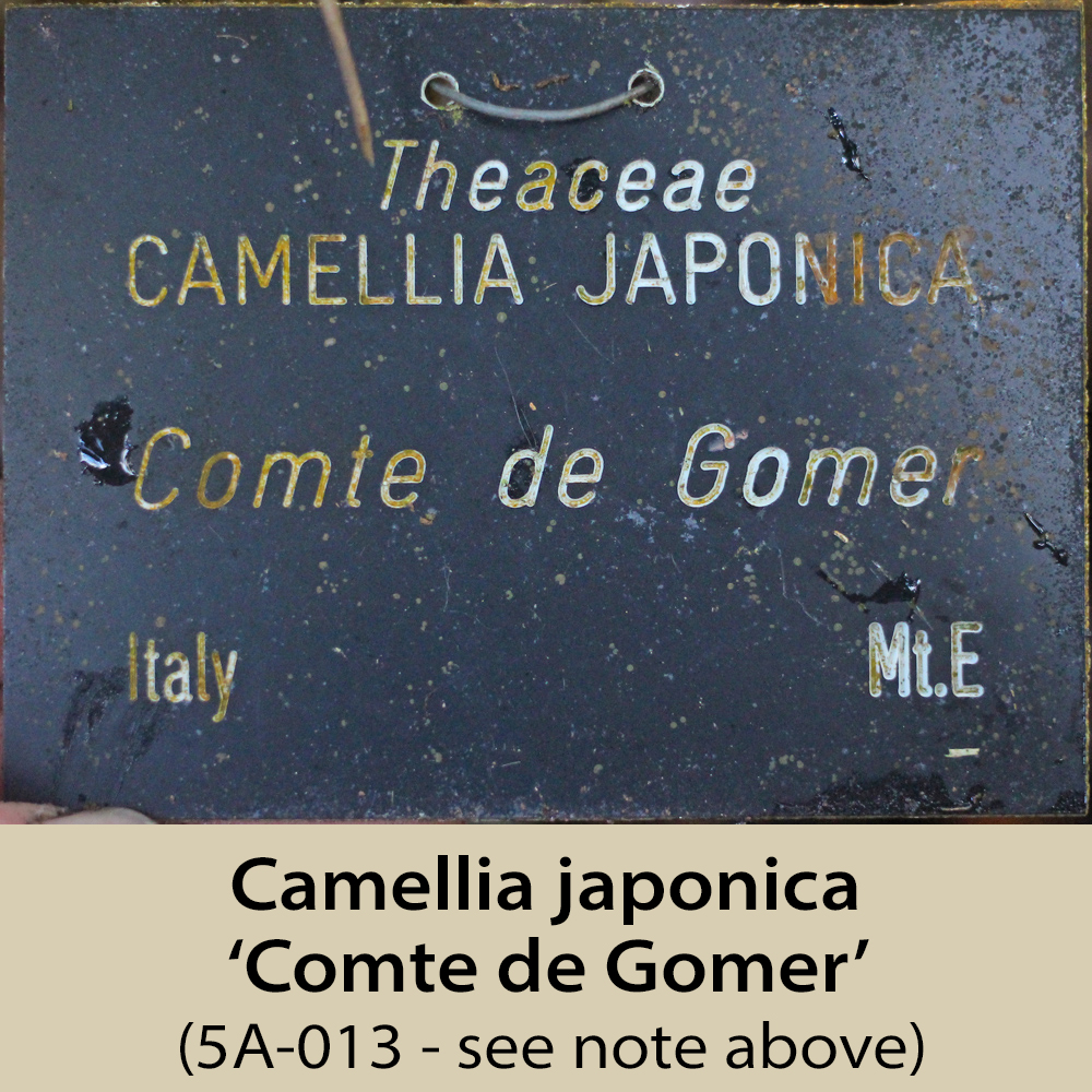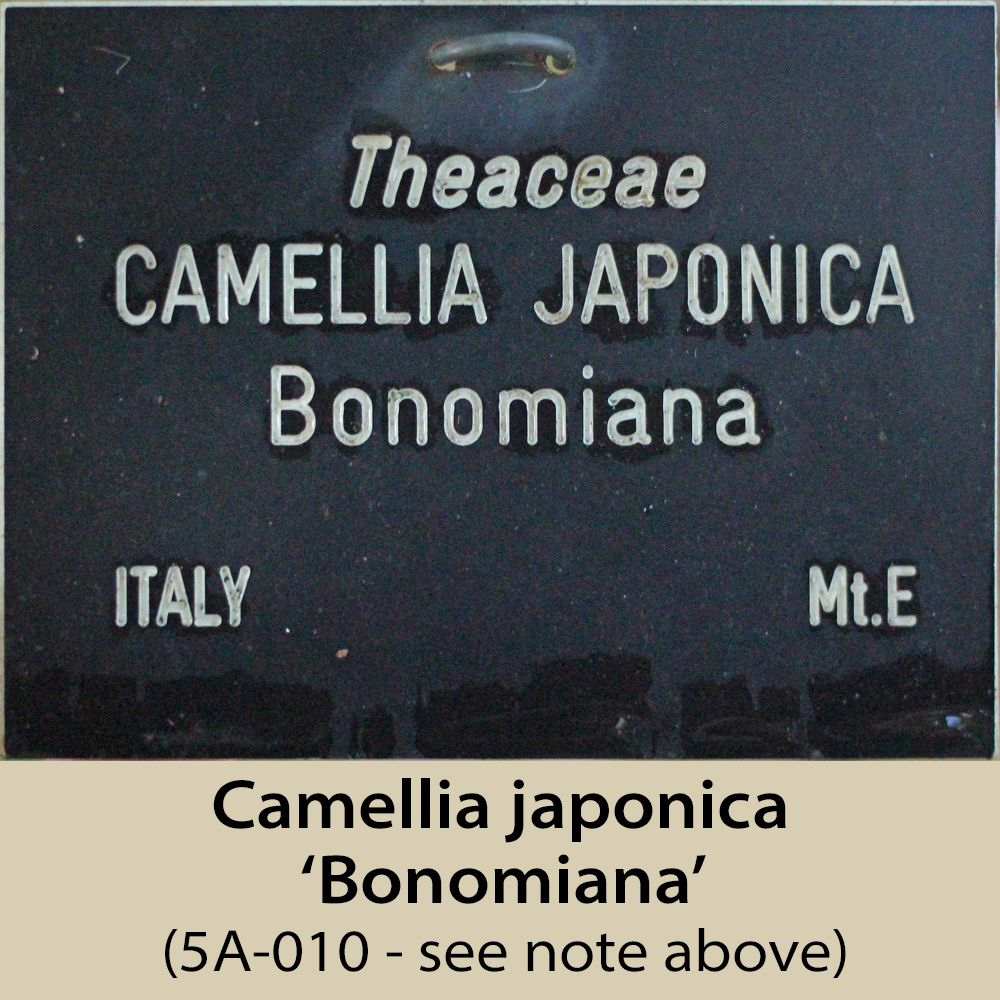 ‘Elizabeth’ (5A-002) was labelled ‘Alba Casoretti’ but doesn’t match descriptions of that variety closely. Comparison with ‘Elizabeth’ (5A-023) shows it to be the same so I have relabelled it accordingly. ‘Elizabeth’ (5A-022) is labelled ‘Elizabeth White’ but is the same as (5A-002) and (5A-023). Since the variety ‘Elizabeth’ is a white variety, putting “White” in the name is superfluous, though the (5A-022) plant has produced solid pink flowers in the past.