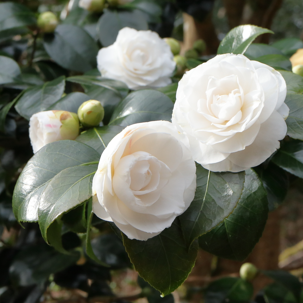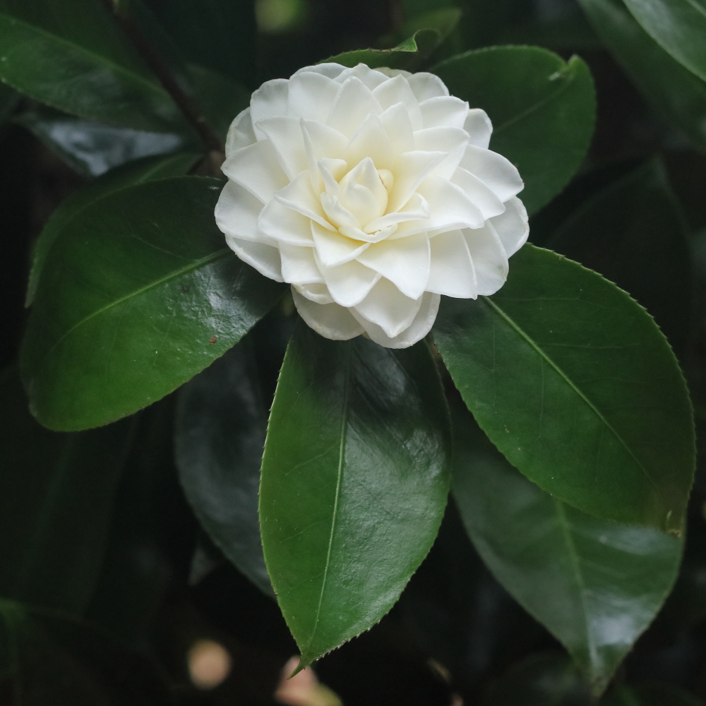 ‘Duchessa di Montpensier’ (5A-017) is described as a large formal double white with pink streaks. This is pure white so is either a sport or something else. The flowers are quite small and the foliage exceptionally glossy.