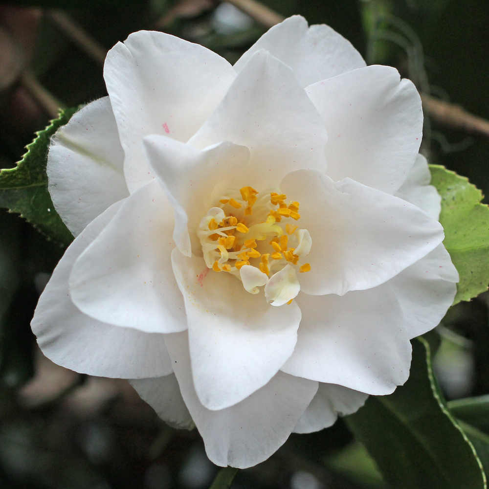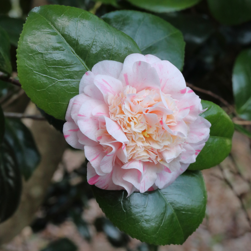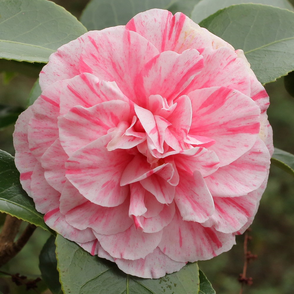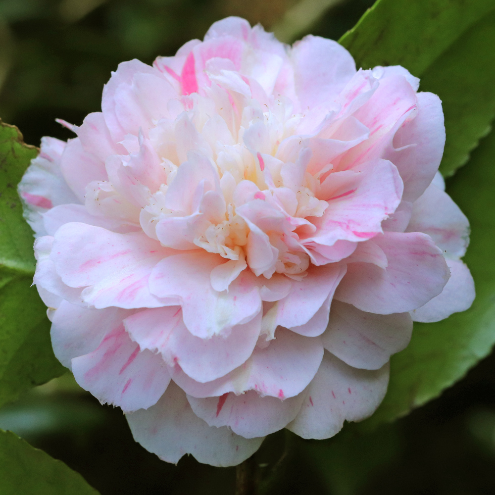 (5A-038) In collection records as ‘Lalla Rookh’, which should be a formal double, pink marbled white, a virus variegated form of ‘L’Avvenire’. This is wrong. The plant of the same name at 5B-013 is very different and better matches the description. There are several formal double whites elsewhere in the collection but this doesn’t seem to match any of them. There have been occasional pink streaks in some blooms.