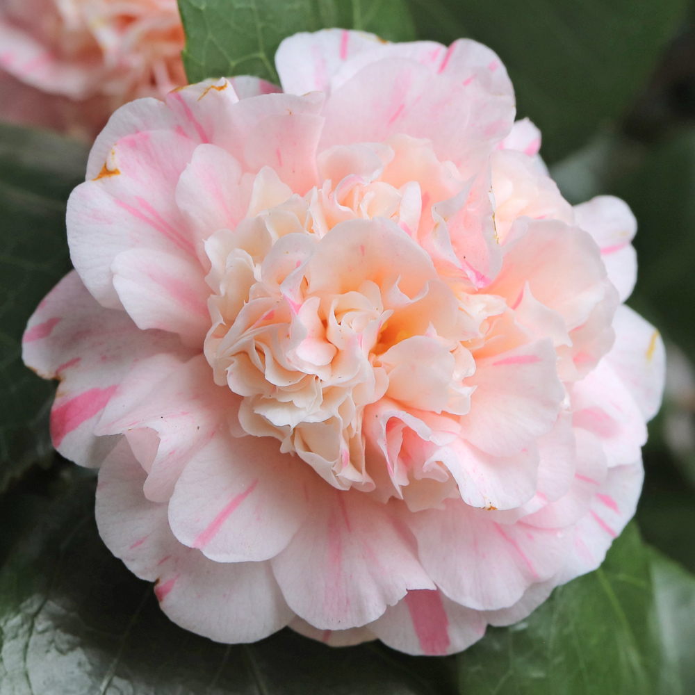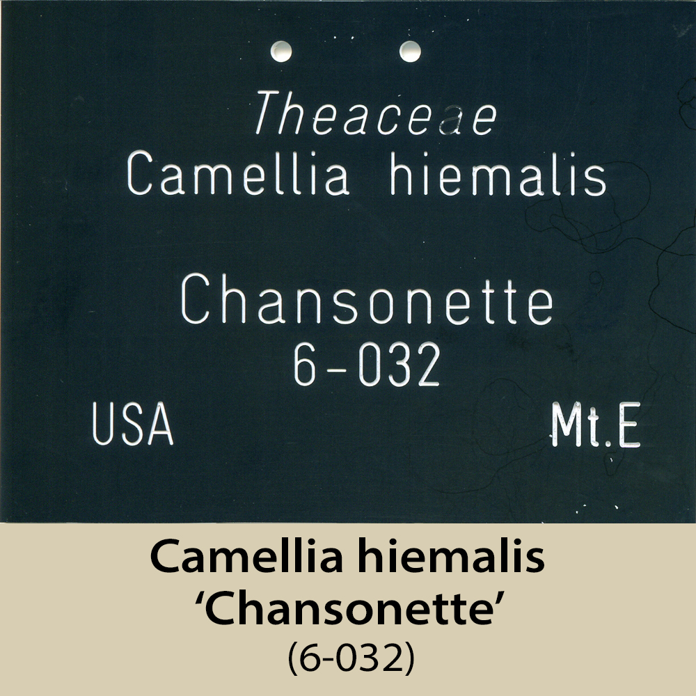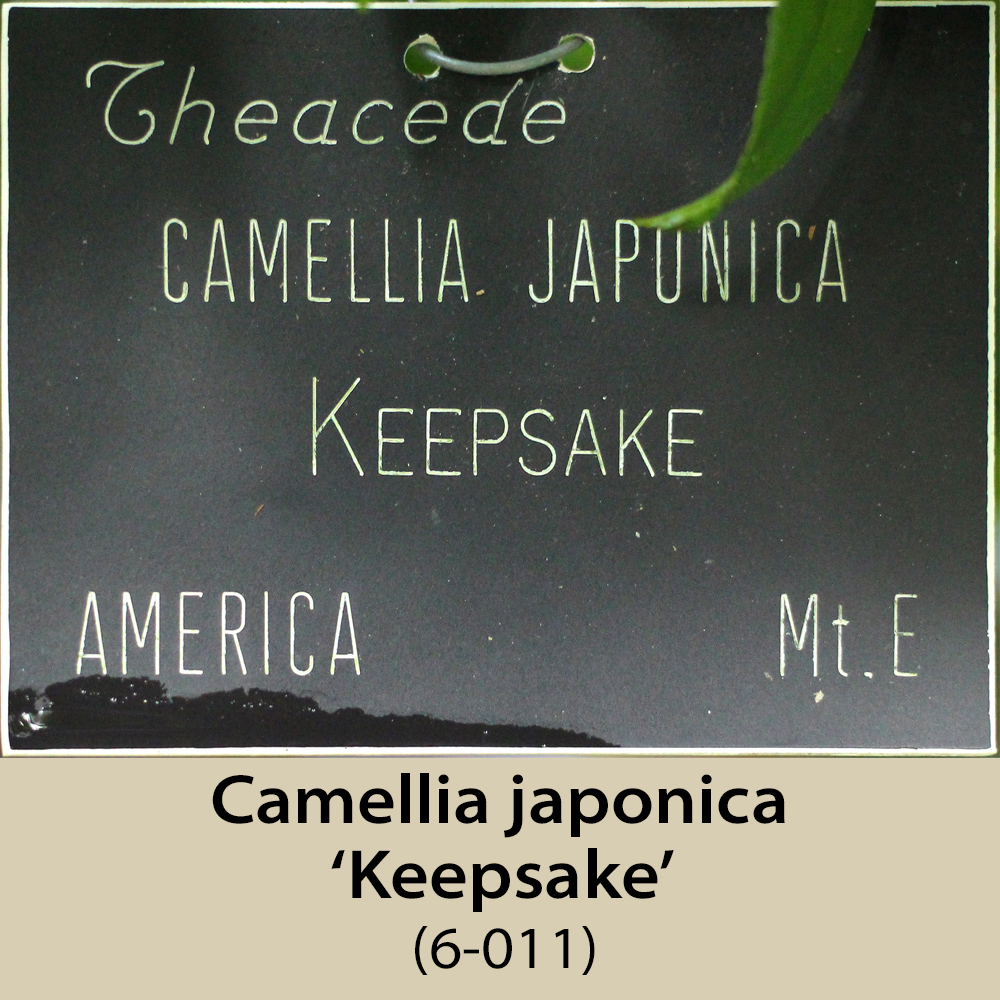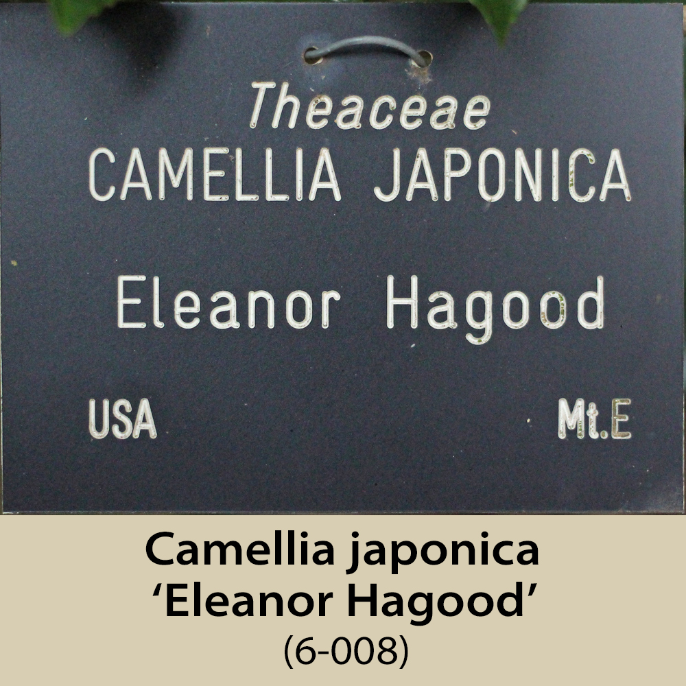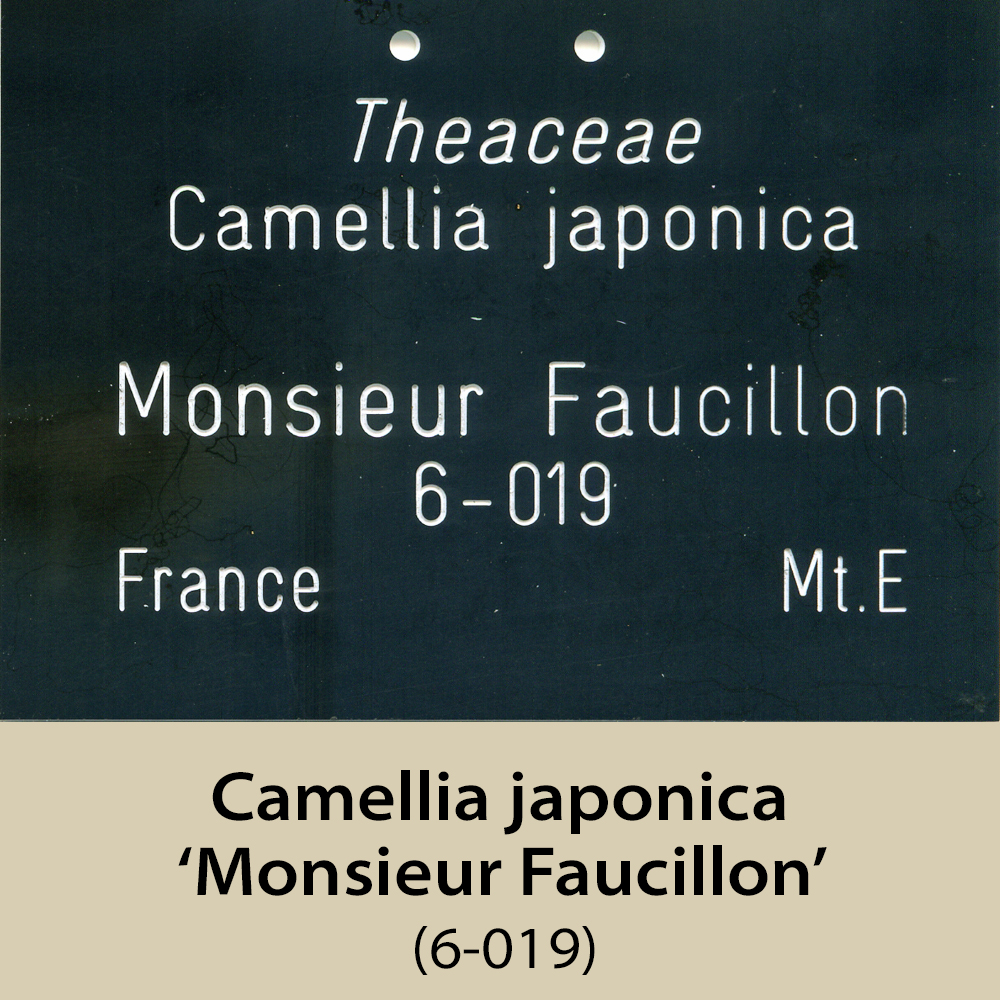 ‘Roza Harrison’/‘Sea Foam’ (6-025). The register lists a japonica ‘Sea Foam’ and a x williamsii ‘Sea Foam’. The former is an American raised formal double, the latter an English semi-double. From its leaf this looks like a japonica but the flower form is wrong for it to be ‘Sea Foam’.
