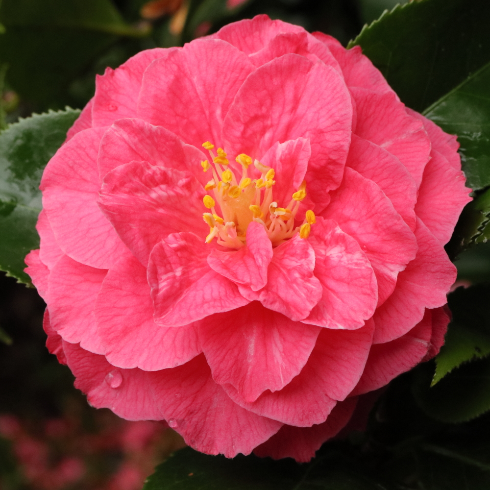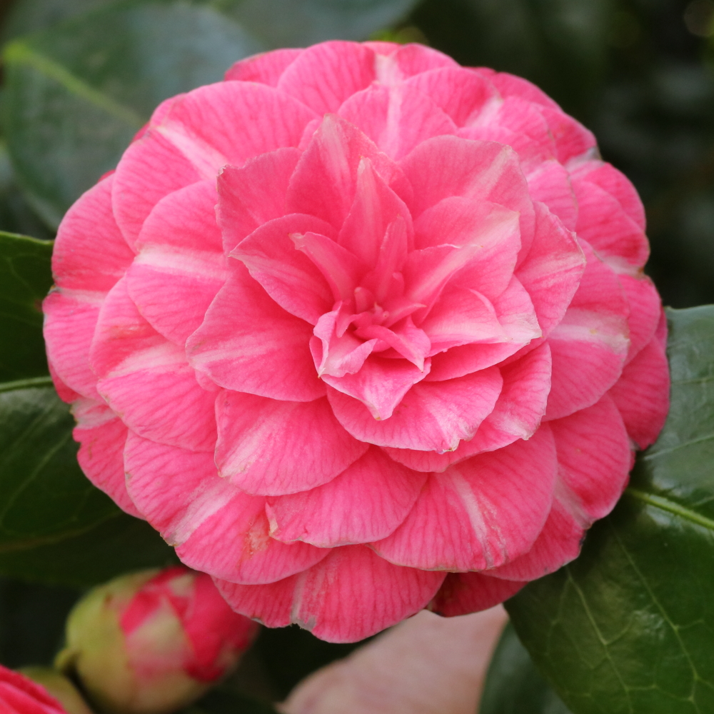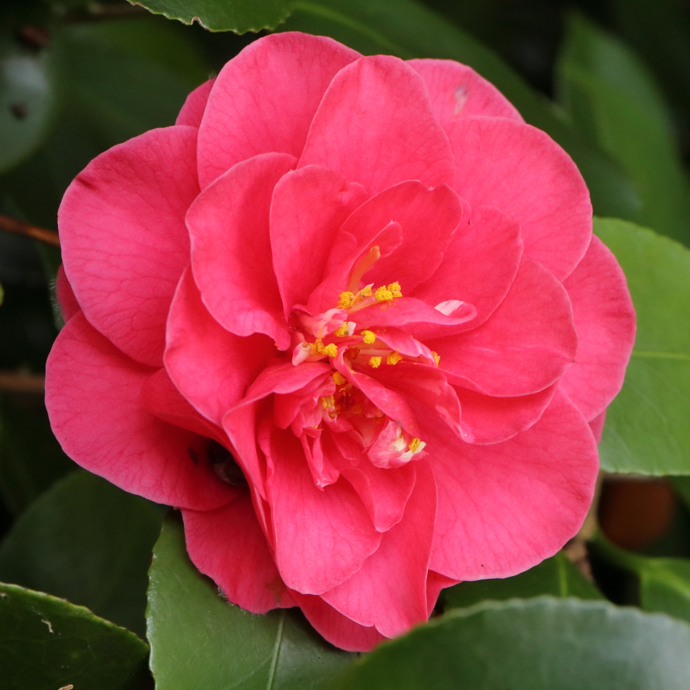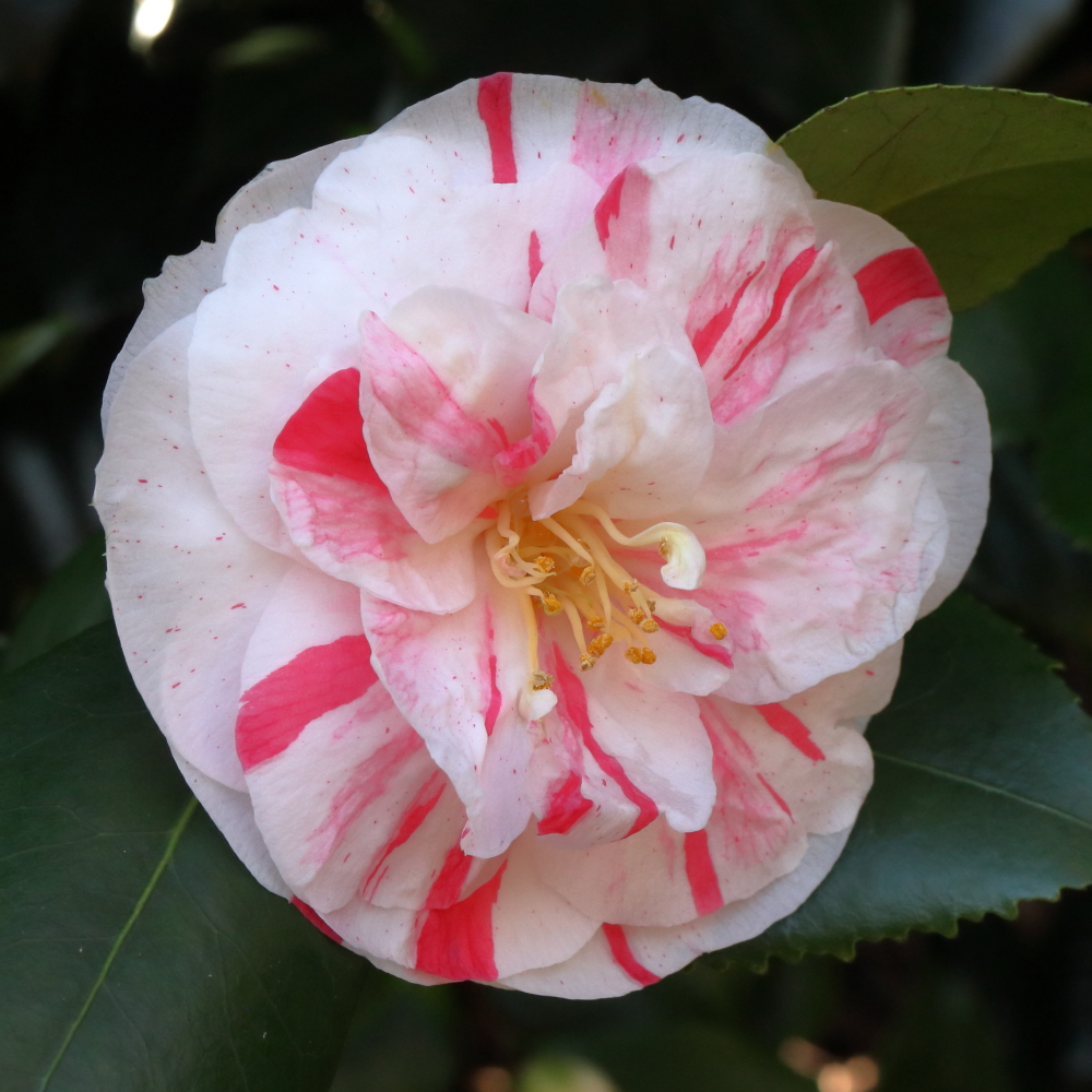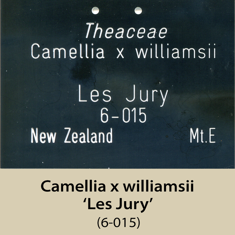 ‘Pollyanna’ (6-022) This should have formal double flowers with 70 petals. I think it may be under-performing due to being a small plant amongst huge old ones so getting far too little light. It should be spelled ‘Pollyanna’, with two l’s, which it isn’t in the Camellia register, but is in the New Zealand camellia register. It was raised by Les Jury in New Zealand so is probably a x williamsii.