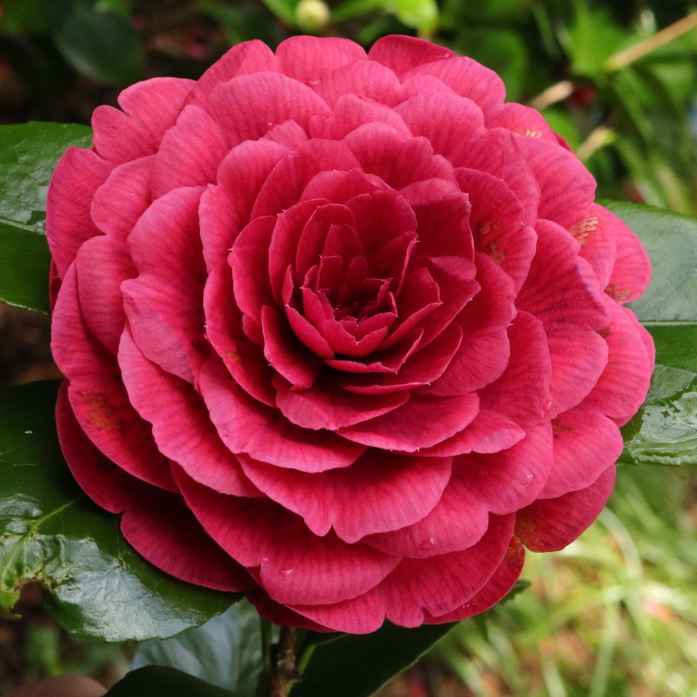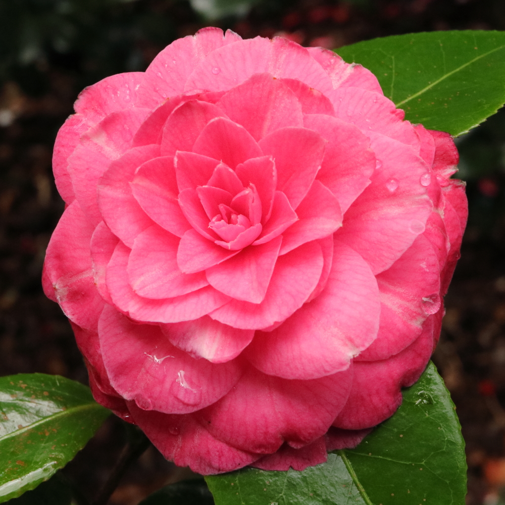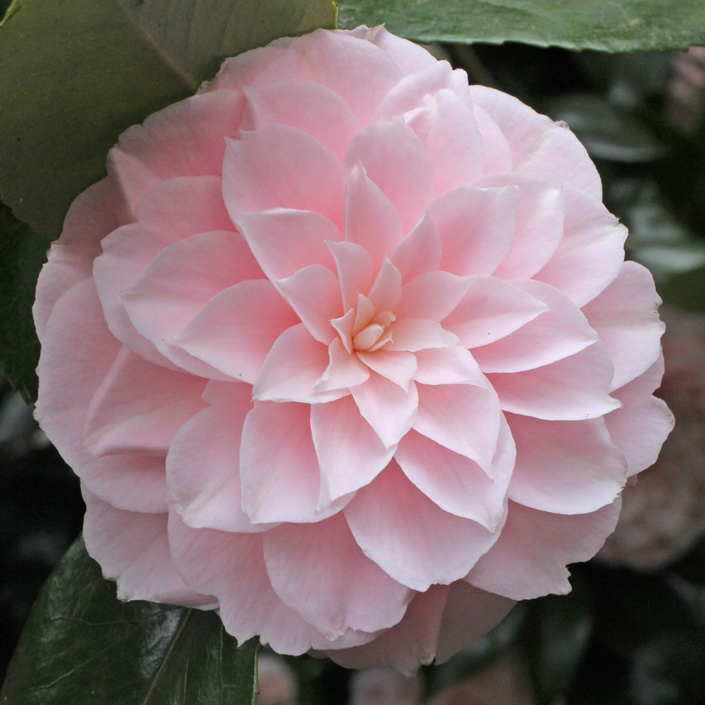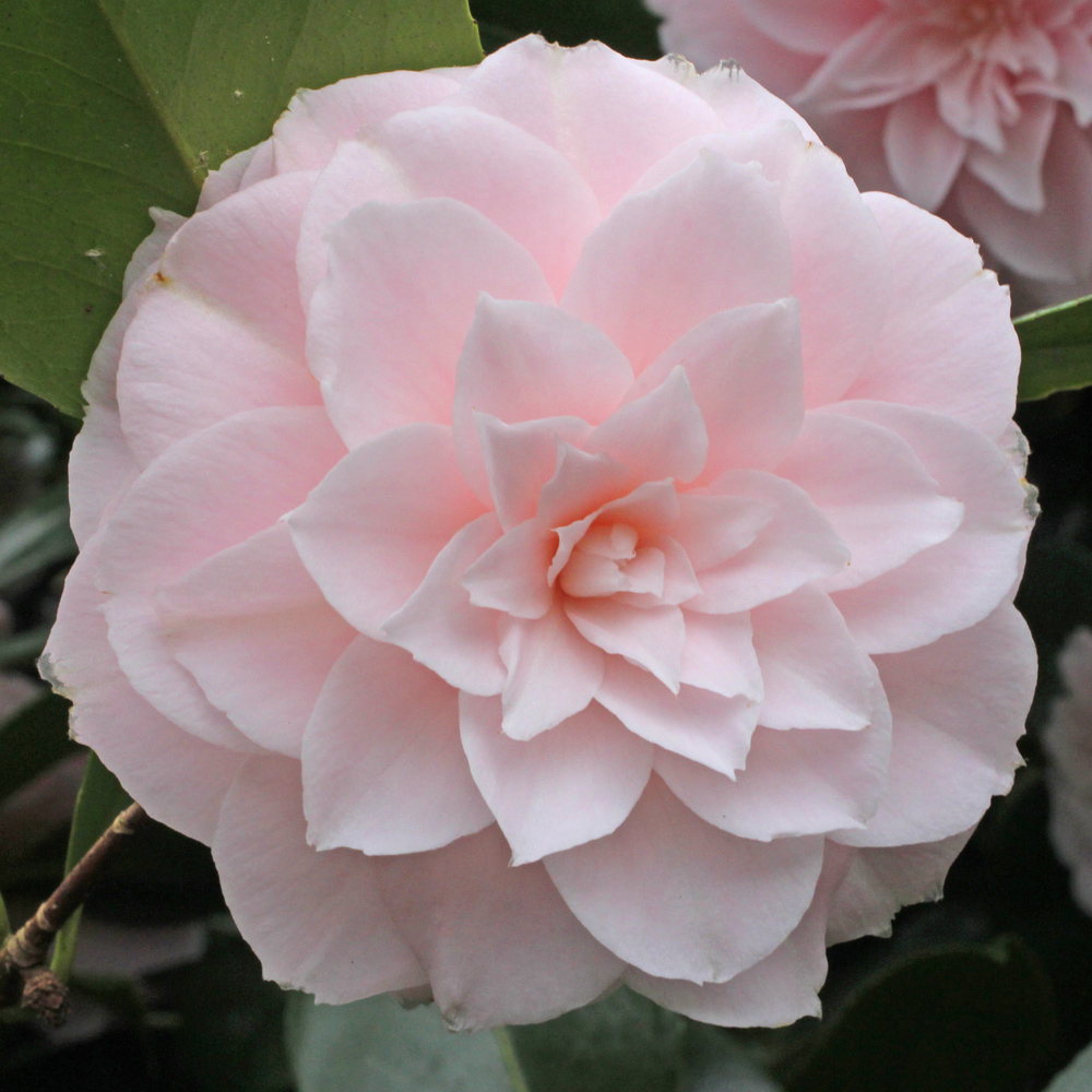 ‘Pollyanna’ (6-022) This should have formal double flowers with 70 petals. I think it may be under-performing due to being a small plant amongst huge old ones so getting far too little light. It should be spelled ‘Pollyanna’, with two l’s, which it isn’t in the Camellia register, but is in the New Zealand camellia register. It was raised by Les Jury in New Zealand so is probably a x williamsii.