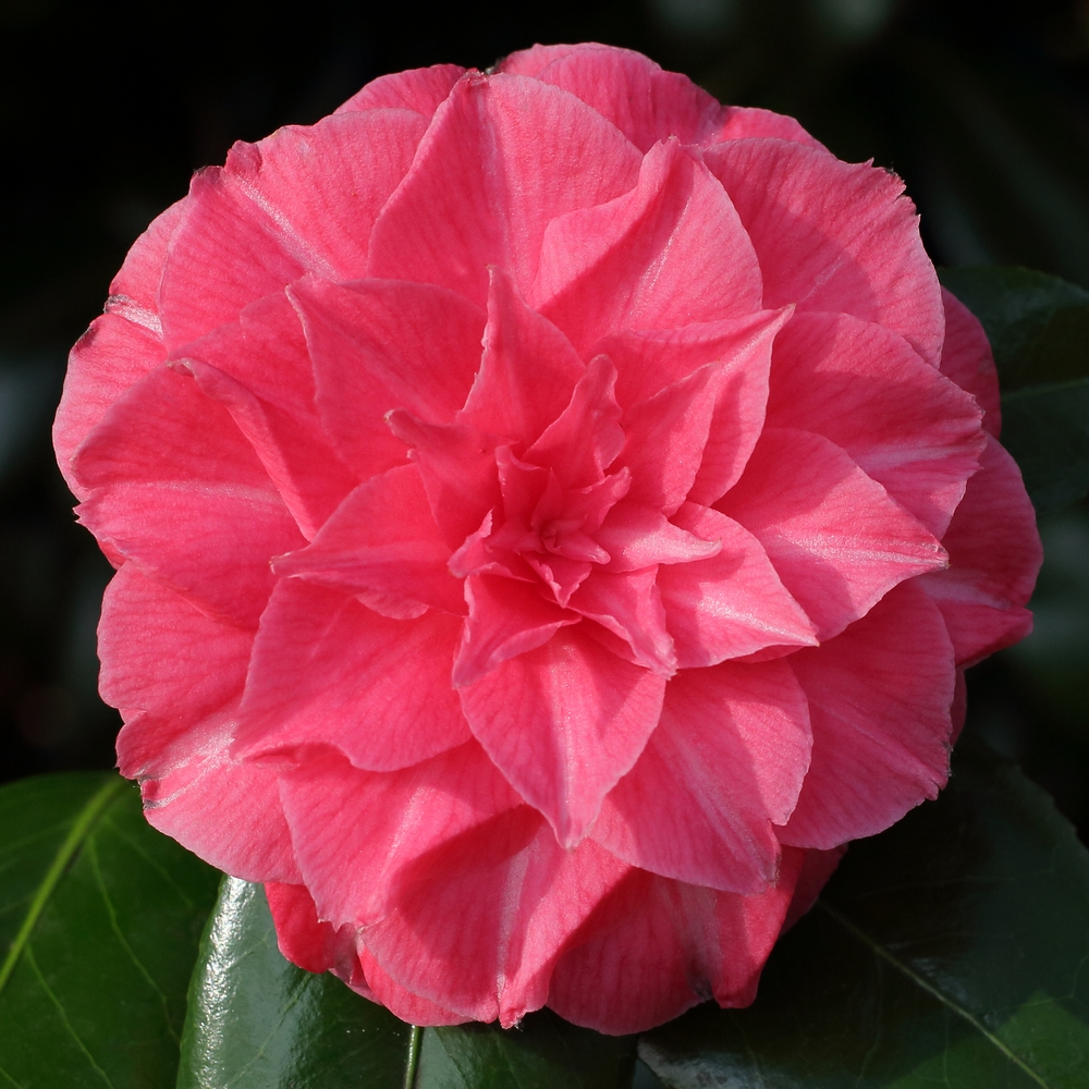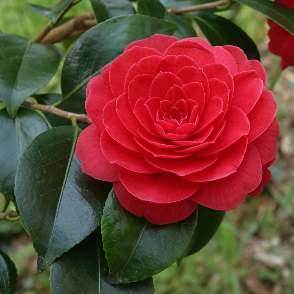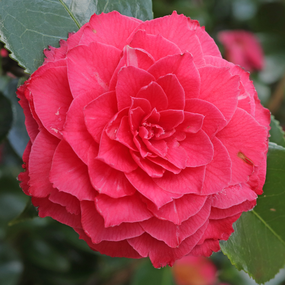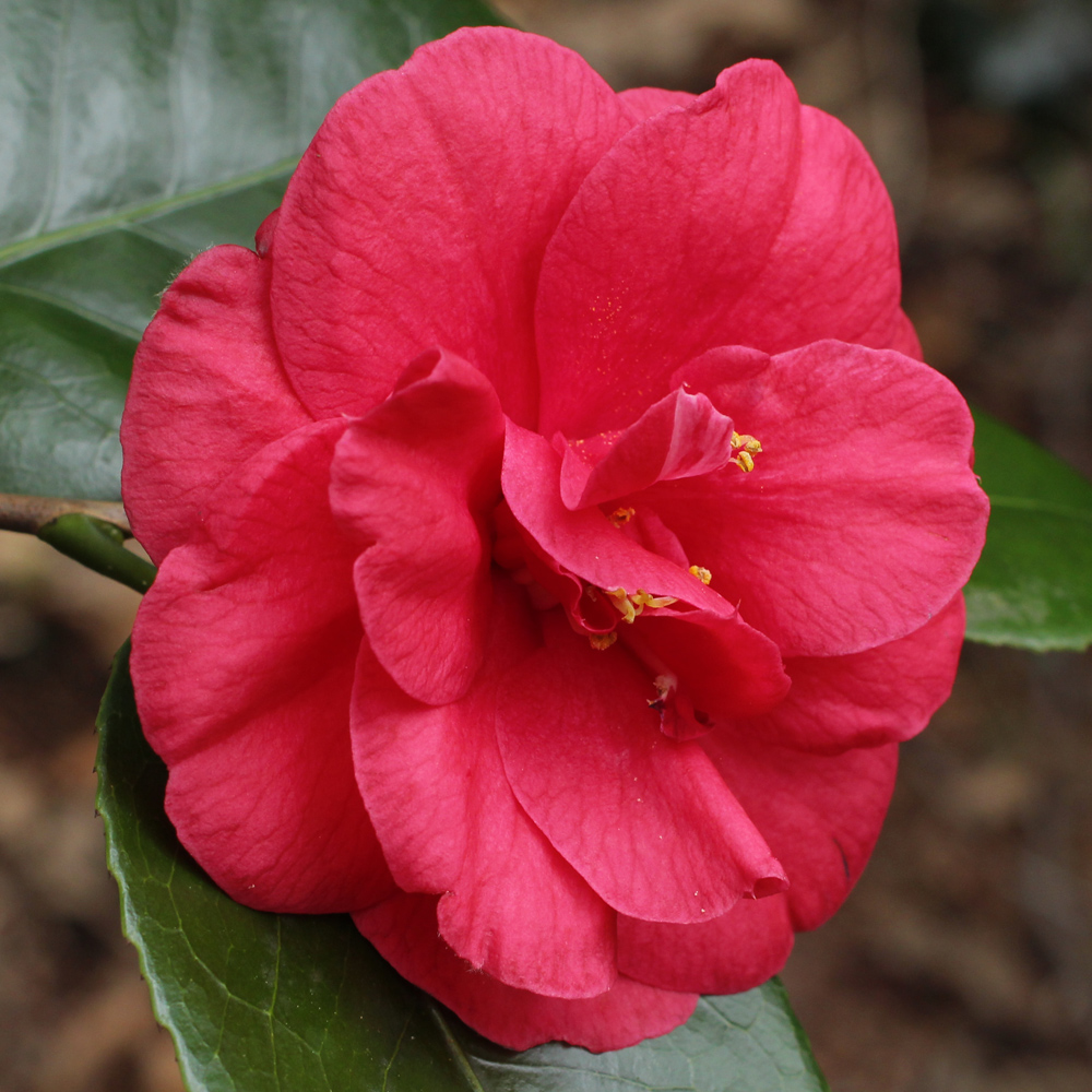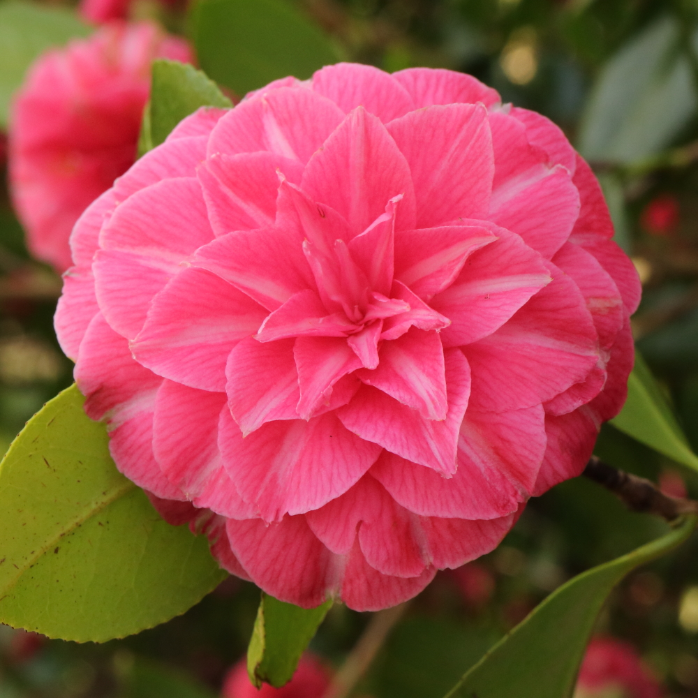 ‘Pollyanna’ (6-022) This should have formal double flowers with 70 petals. I think it may be under-performing due to being a small plant amongst huge old ones so getting far too little light. It should be spelled ‘Pollyanna’, with two l’s, which it isn’t in the Camellia register, but is in the New Zealand camellia register. It was raised by Les Jury in New Zealand so is probably a x williamsii.
