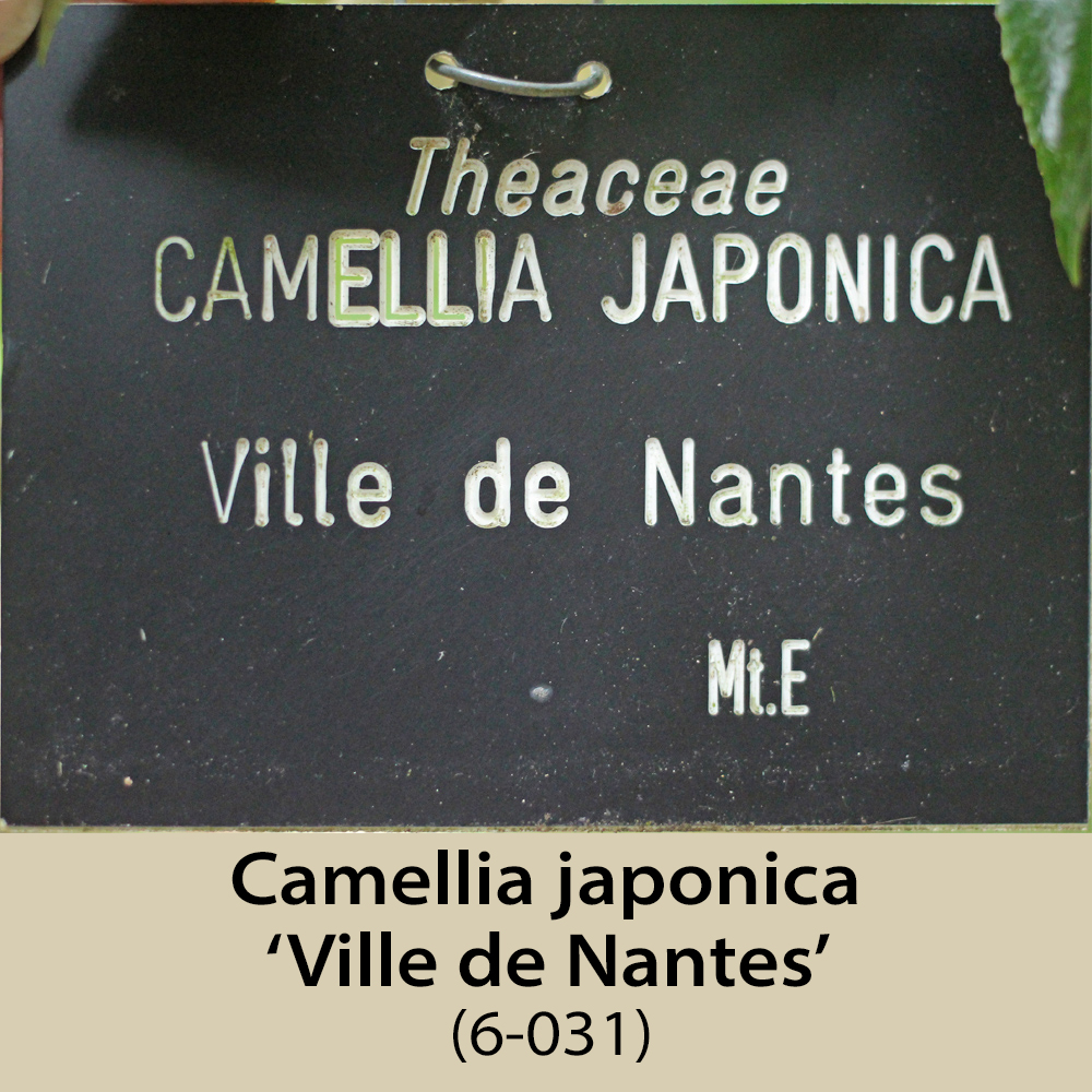 ‘Ville de Nantes’ (6-031) is a white blotched virus variegated variety, effectively a fimbriated form of ‘Masayoshi’, and this appears to be the pure red ‘Ville de Nantes Red’, though with much smaller flowers than the specimen at (1M-054). In 2015 it had a shoot coming out low down with red flowers the petals of which were neither fimbriated or twisted, which would be yet another sport, ‘Eugene Bolen’.