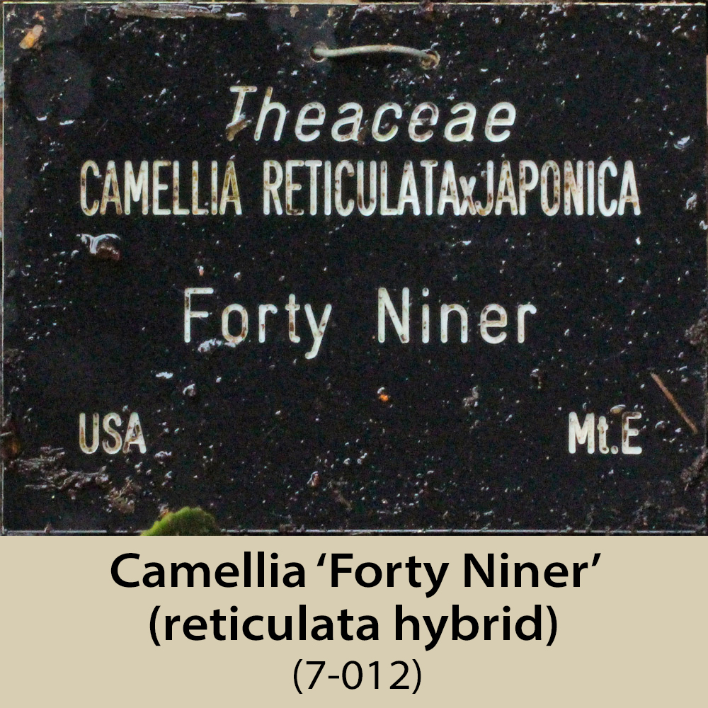 (7-014) was labelled ‘Forty-niner’ which it clearly isn’t. It may have been the rootstock for that variety; it has a reticulata type leaf but unusually long and narrow, and pale pink flowers that usually hang down.
